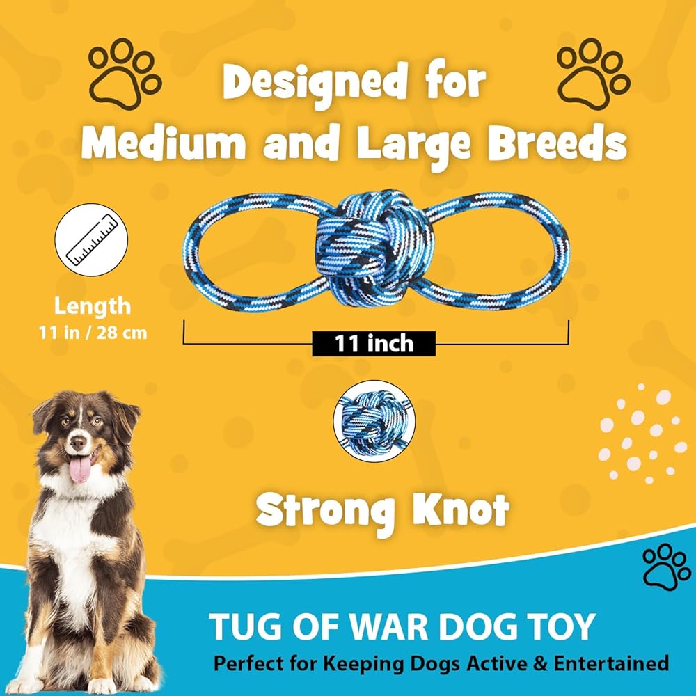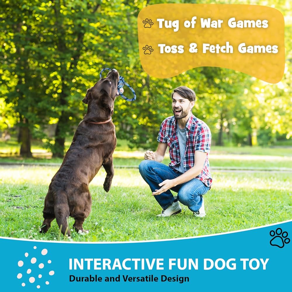 Versatile Design: Suitable for medium and large dogs designed to endure play with strong knot. Perfect for two dogs or tug of war with your pet.