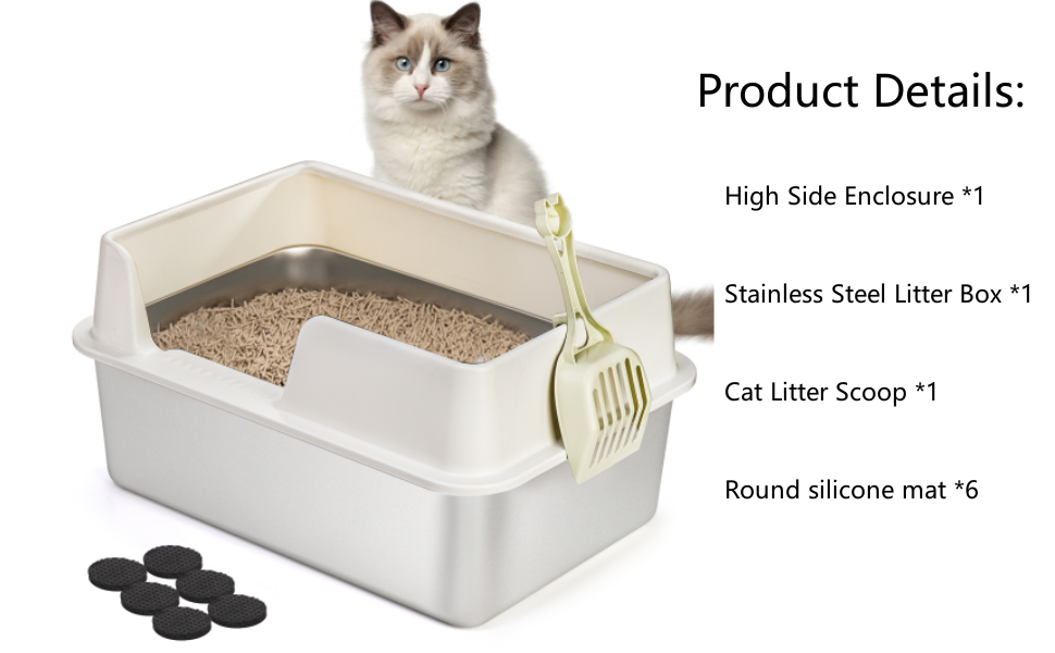 سهل التنظيف: صندوق الفضلات المعدني الخاص بنا للقطط يحتوي على أسطح ناعمة وغير لاصقة، مما يجعل التنظيف سريعًا وسهلاً باستخدام أي مجرفة؛ يمكنك بسهولة تنظيف سلة المهملات يدويًا تحت الماء الدافئ أو المتدفق ومسحها لتجفيفها بقطعة قماش. يمكن تعليق مجارف القمامة البلاستيكية بجوار صندوق القمامة دون الخوف من فقدانها.