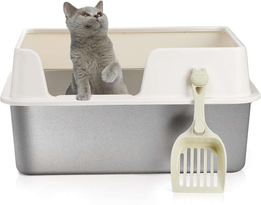صندوق فضلات القطط من الفولاذ المقاوم للصدأ من Lawei، صندوق فضلات القطط الصغيرة مع غطاء، صندوق فضلات القطط المعدني مع حاوية ذات جوانب عالية للقطط الصغيرة، سهل التنظيف، غير لزج وغير روائح، 19.5 بوصة × 13.6 بوصة × 9.5 بوصة