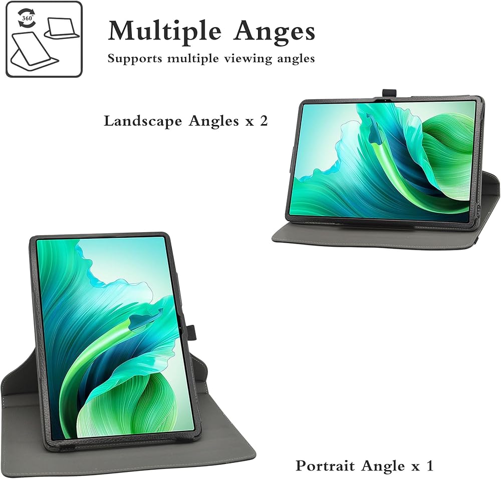 360 degrees rotating swivel allows the tablet to rotate both vertically and horizontally with ease while in the case.