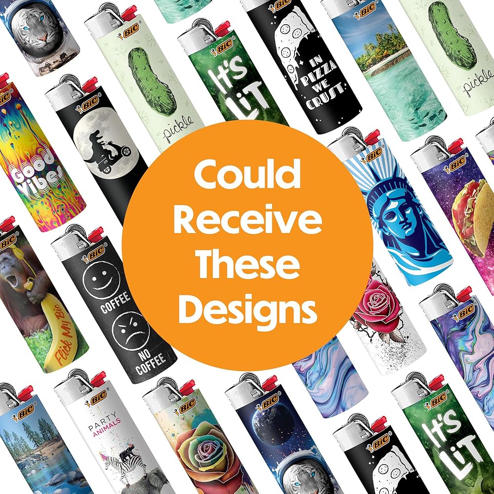 The designs featured in this tray of 50 BIC lighters are a unique blend of favorite Special Edition designs based on feedback from BIC Lighter fans!