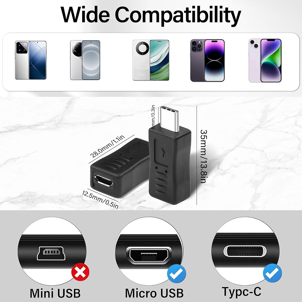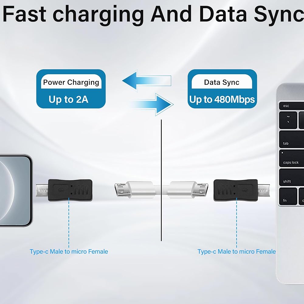 • Micro USB to USB-C Adapter: Easily convert your Micro-USB cable to USB-C cable, no need to carry an extra USB-C cable, convenient for charging and data sync for mobile phones, tablets, laptops, etc. with USB-C ports.