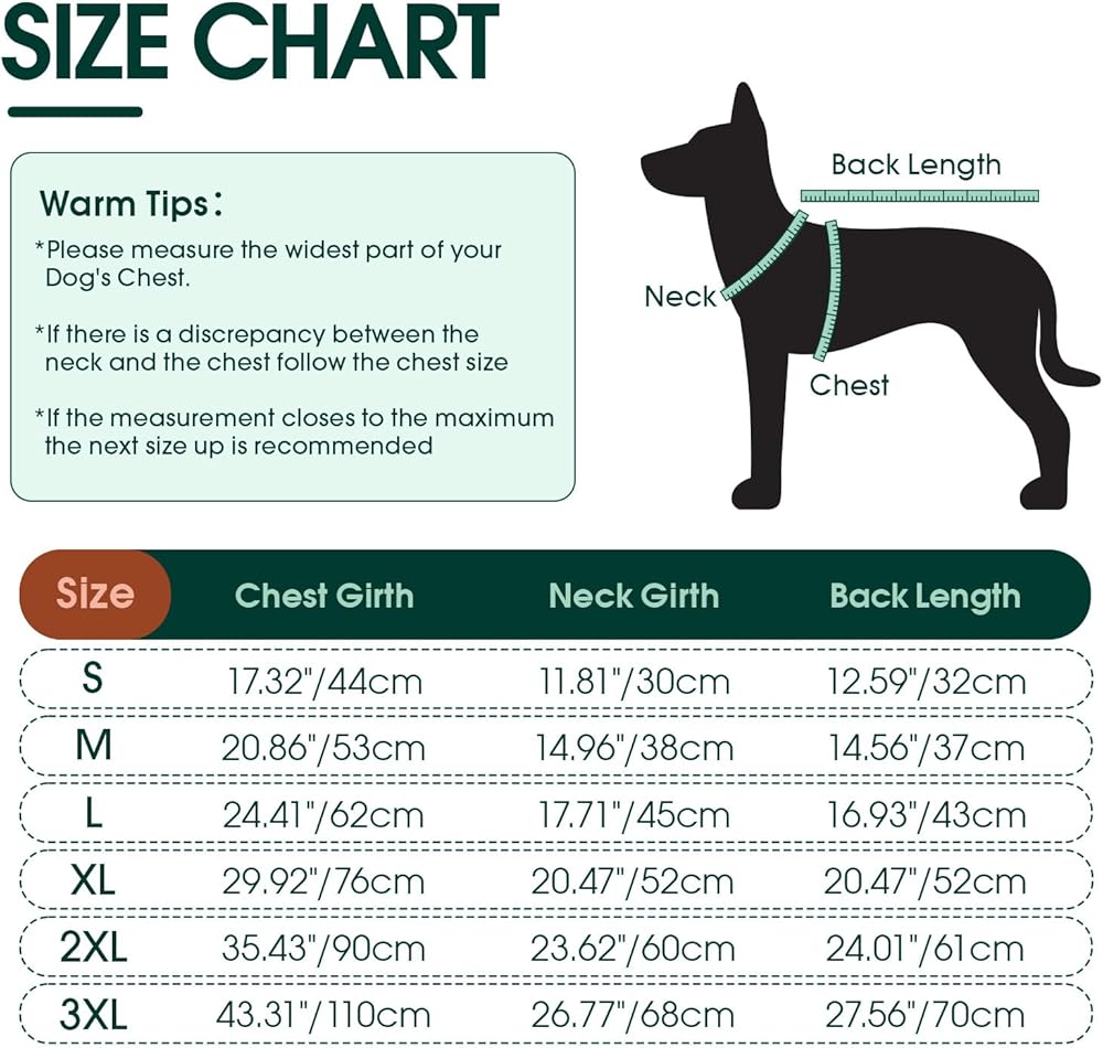 • تناسب معظم أحجام الكلاب: سترة دافئة للكلاب بها 6 مقاسات للاختيار من بينها من S إلى 3XL. سترة عيد الميلاد للكلاب مناسبة لتيدي، وشنوزر، ويوركي، وبولدوج، وبج، وجولدن ريتريفر، ولابرادور وما إلى ذلك. معاطف الكلاب الشتوية مناسبة لجميع الأنشطة الداخلية والخارجية. يرجى الرجوع إلى جدول المقاسات الخاص بنا لقياس صدر ورقبة كلبك. إذا كان مقاس كلبك بين مقاسين، فيرجى اختيار مقاس أكبر
