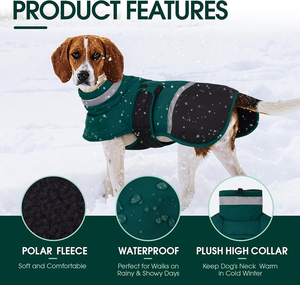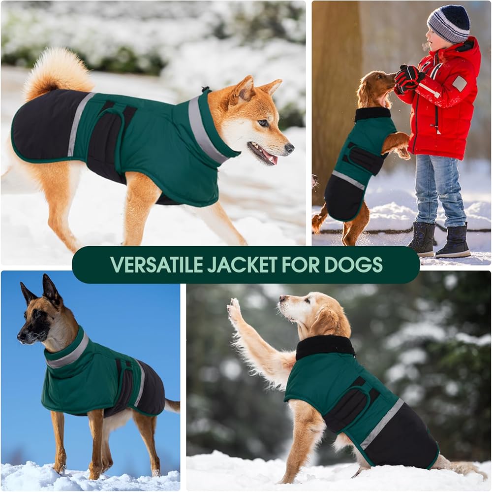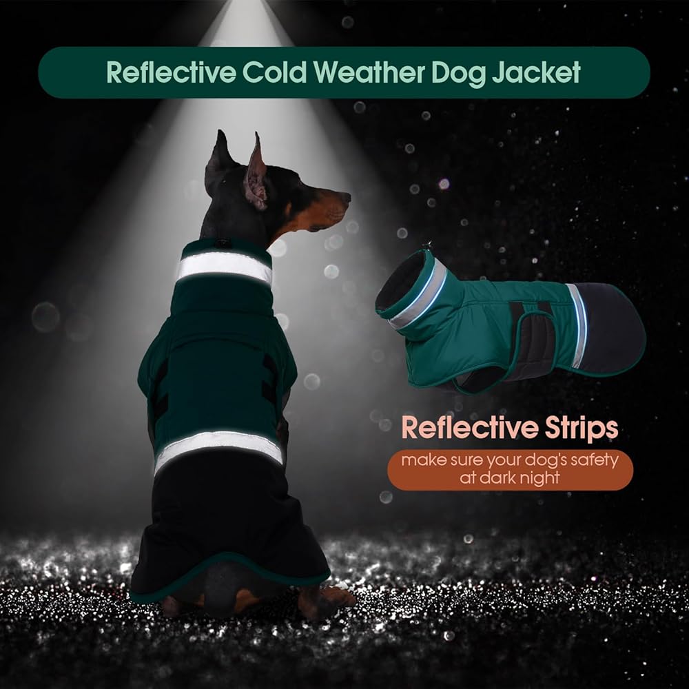 • معطف عاكس للكلاب: معطف شتوي للكلاب مع سرج مصمم بشريط عاكس عالي الوضوح على الياقة وذيل السترة، معاطف شتوية للكلاب الكبيرة يمكن أن تبقي حيوانك الأليف مرئيًا للغاية في ظروف الإضاءة المنخفضة، مما يضمن سلامته أثناء المشي ليلاً.