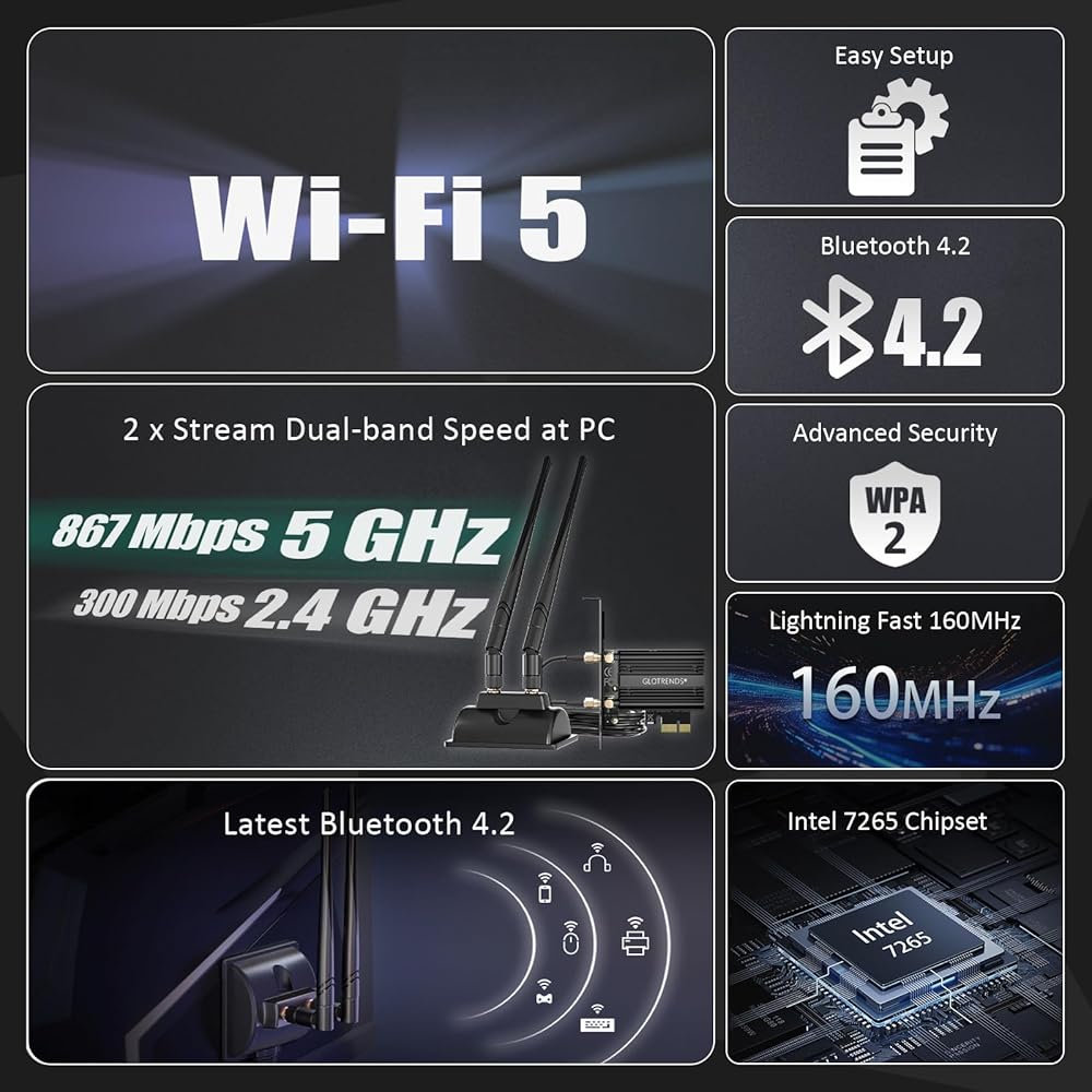 استنادًا إلى وحدة Intel BE200، المتوافقة مع أحدث معايير IEEE 802.11be وBluetooth 5.4. ومتوافق مع الإصدارات السابقة مع معيار Wi-Fi 6/5/4