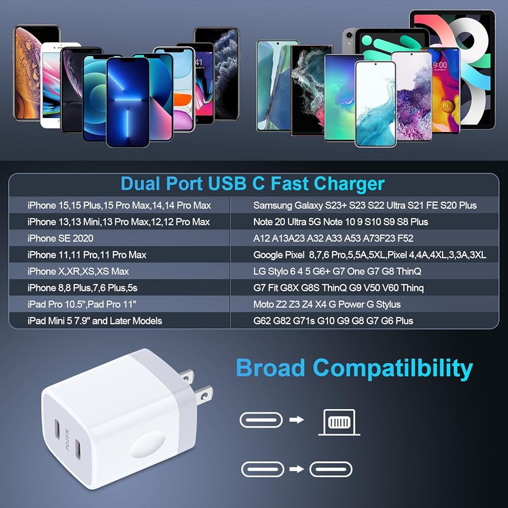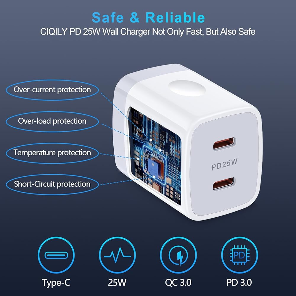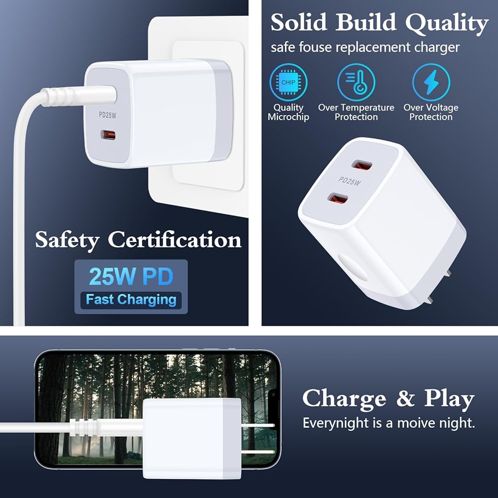 -Super Fast Charger Wall Charger: USB c brick fast charging plug with standard PD 3.0 make you'll get a max 25W charge.