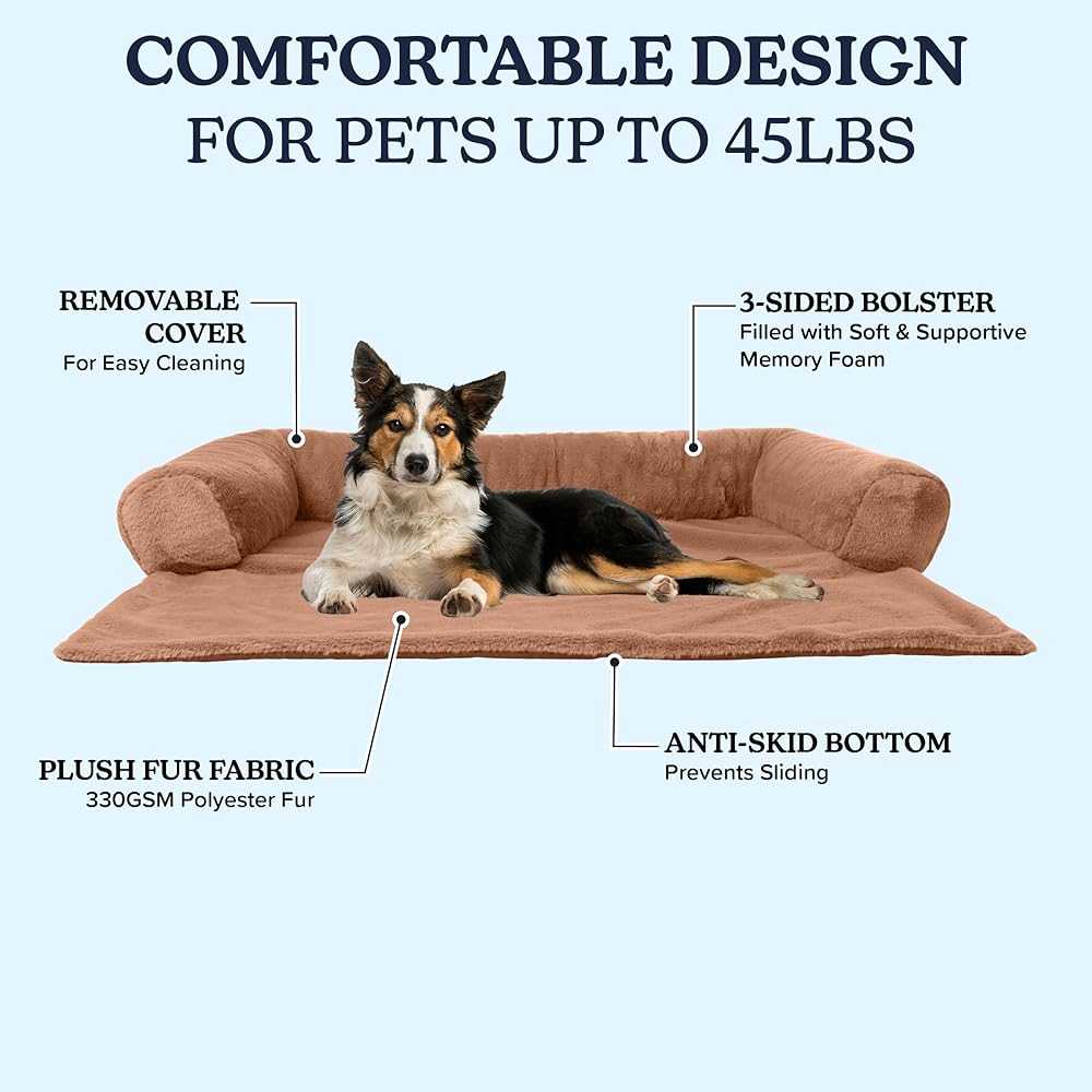 Give your four-legged friends a comfortable and cozy place to curl up and rest while protecting your furniture with the Pet Couch Covers for Sofa by PETMAKER. This puppy bed is made with plush polyester fur fabric that your medium dog, cat, puppy, or kitten will love to snuggle up to as well as a 3-sided bolster filled with shredded memory foam and support foam, offering head and neck support for your furry pal. This dog crate bed has an anti-slip bottom to prevent sliding and has a removable cover for easy cleaning. PETMAKER is your go-to source for dog products, dog accessories, and dog essentials that your furry friend is sure to love. Important: PETMAKER is committed to providing the consumer with the absolute best price and value on all of our products. Note: This is an exclusive product of PETMAKER and only Dog Beds & Furniture by PETMAKER are guaranteed to be genuine. Avoid buying counterfeit products and transacting with unauthorized sellers.