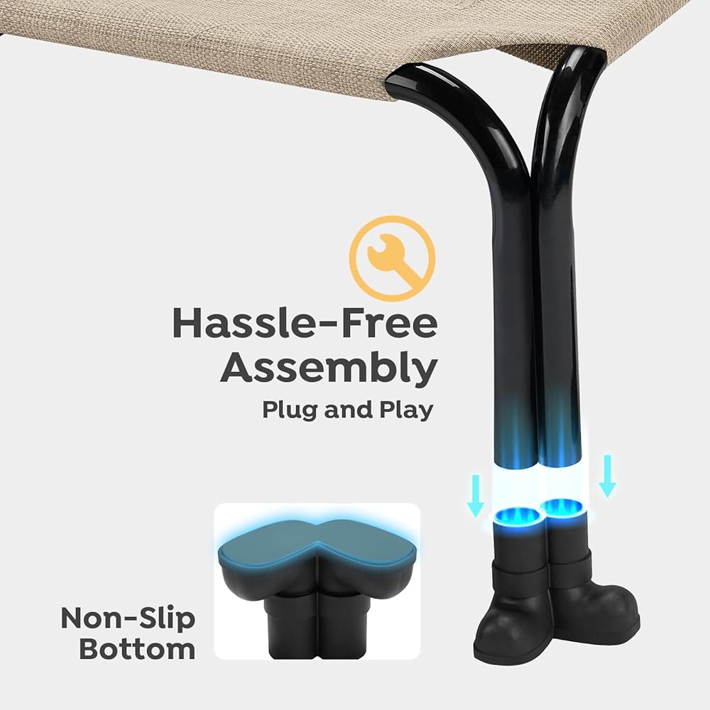 متين وقوي: يتكون سرير الحيوانات الأليفة المرتفع من إطار فولاذي مطلي بالمسحوق، وشبكة تيسلين متينة، ويتميز بهيكل ساق مزدوج الأنبوب لتعزيز الثبات والسلامة. وتضمن الأقدام المضادة للانزلاق بقاء سرير الكلاب في مكانه بشكل آمن، مما يوفر لحيواناتك الأليفة مكانًا موثوقًا للراحة.