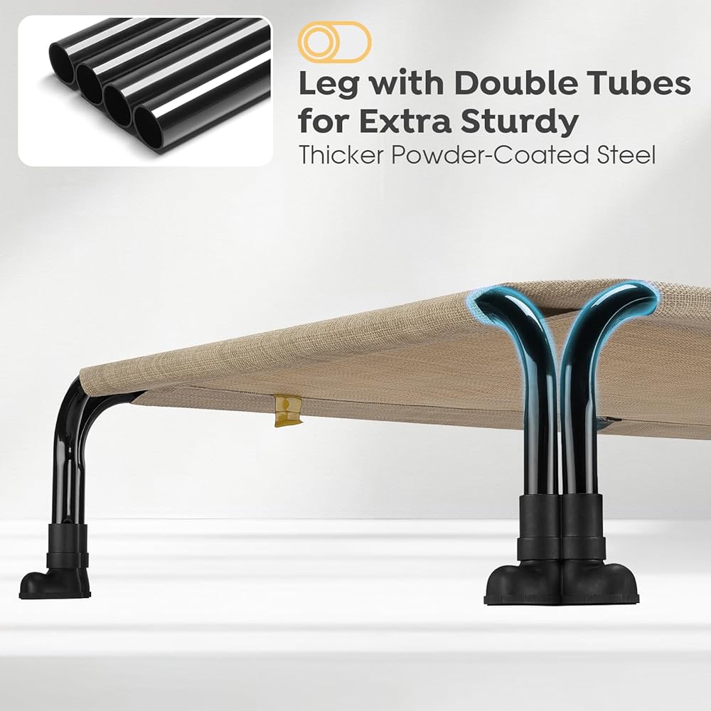 سرير كبير مرتفع للحيوانات الأليفة: يبلغ مقاس إطار سرير الكلاب 41 بوصة طول × 27 بوصة عرض × 7.9 بوصة ارتفاع (104 × 69 × 20 سم). يتناسب حجم سرير الكلاب مع أقفاص الكلاب القياسية. مناسب لكل من البلدغ الإنجليزي، واللابرادور، والروت وايلر، الملاكمون، كلاب الهاسكي، بوردر كولي، سامويد، إلخ.