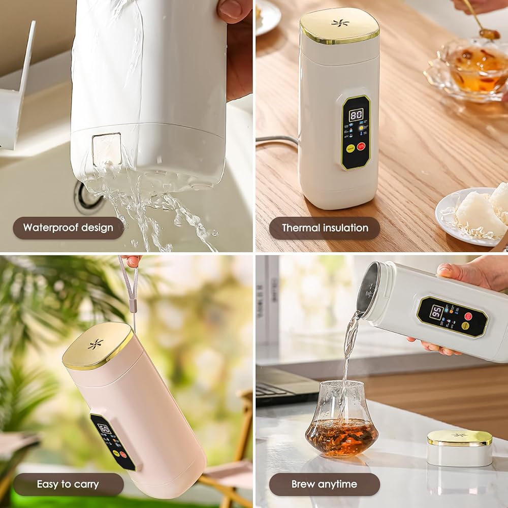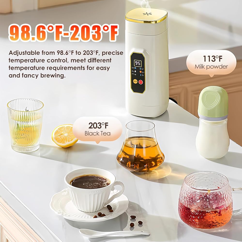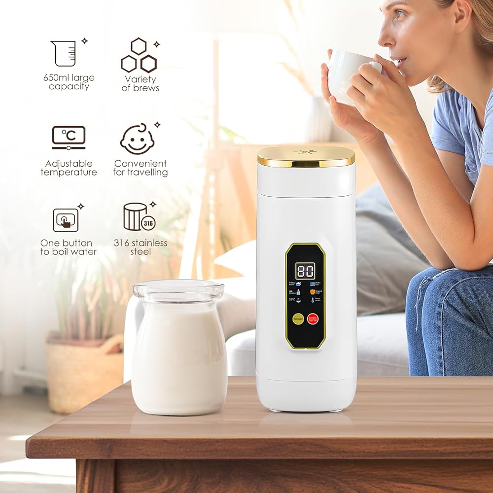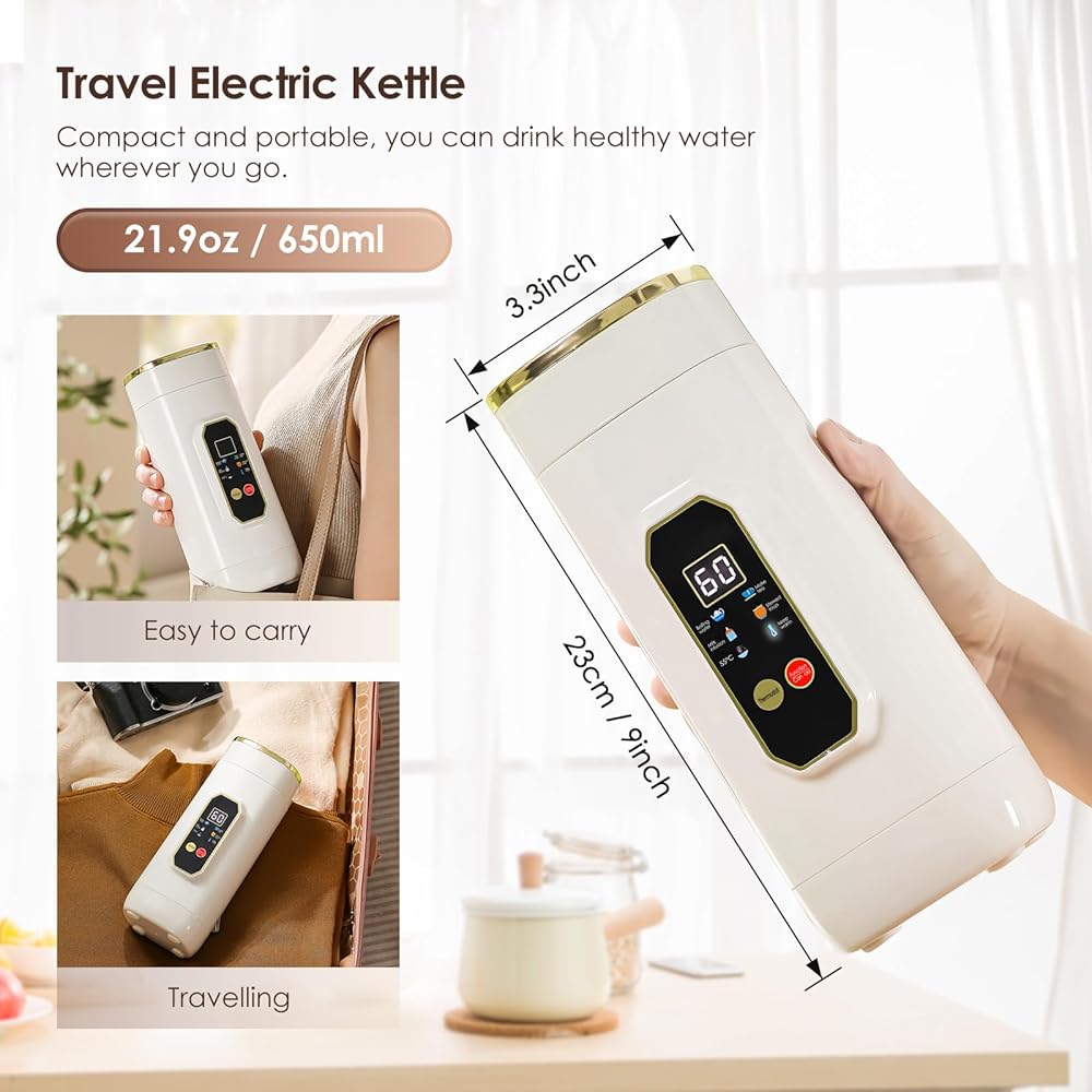 سعة كبيرة 650 مل 6 إعدادات ذكية مسبقًا لدرجة الحرارة - درجات حرارة غلاية كهربائية محمولة محددة مسبقًا، مناسبة للشاي الأسود والقهوة وحليب الأطفال والشاي الصيني الاسود والشاي الأخضر وشاي الفاكهة وما إلى ذلك. إنها ترث جميع ميزات الغلايات والترمس والأكواب، وتلبي الاحتياجات المختلفة. .