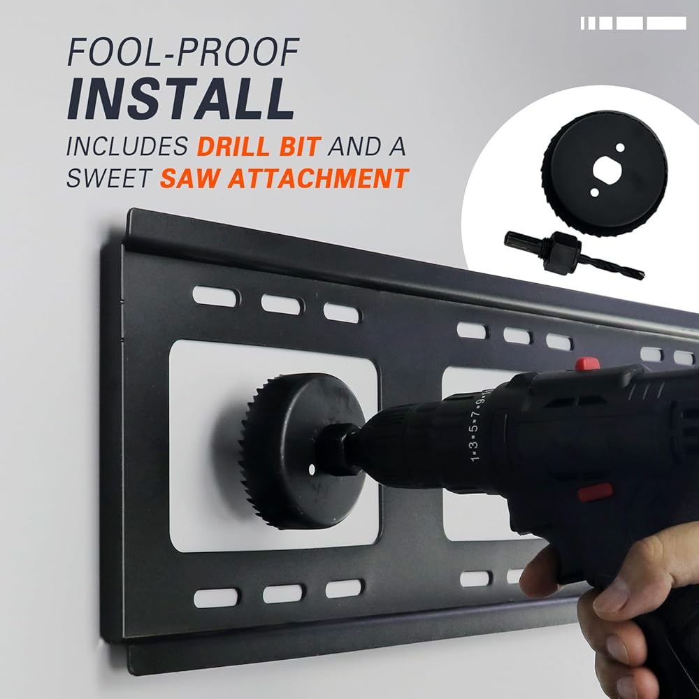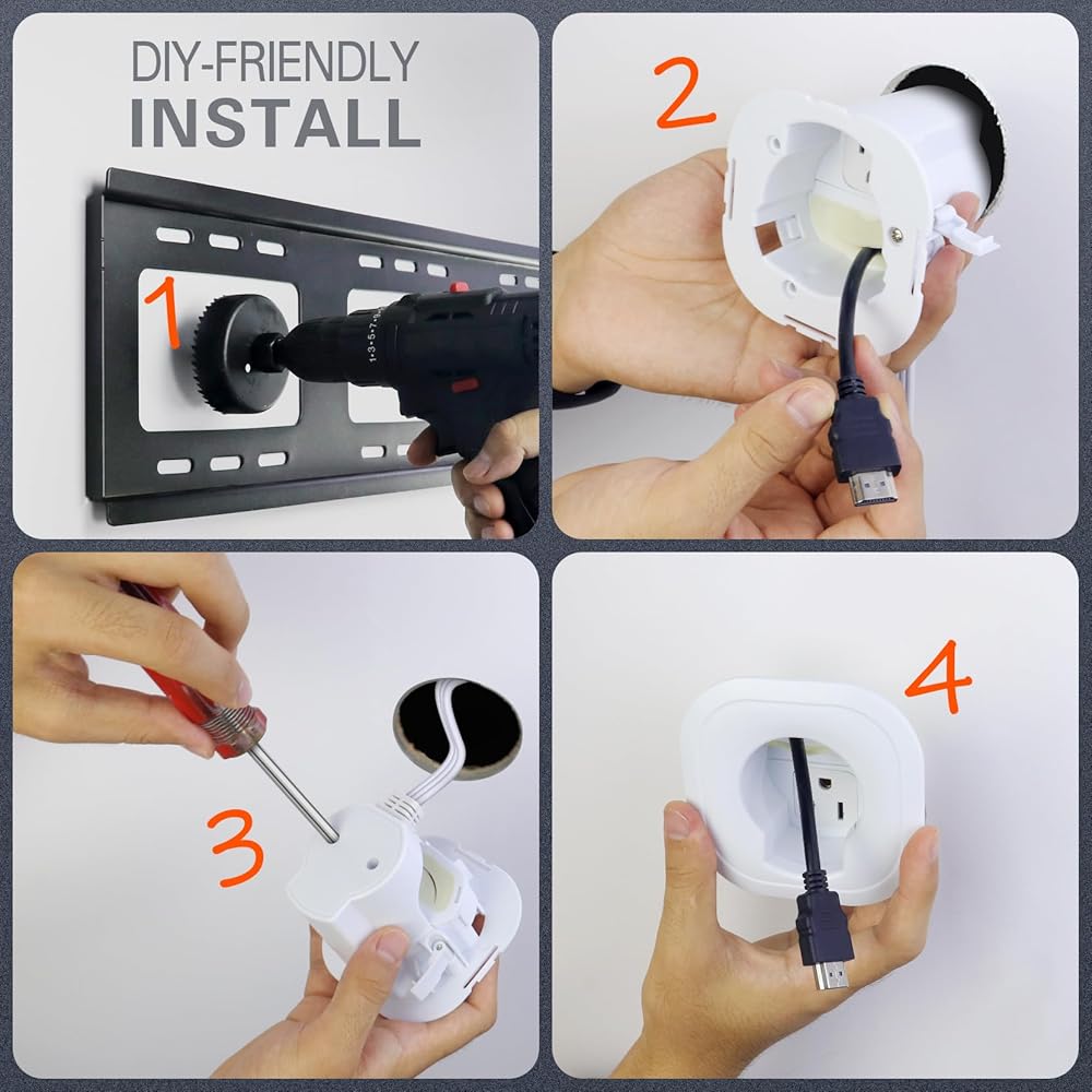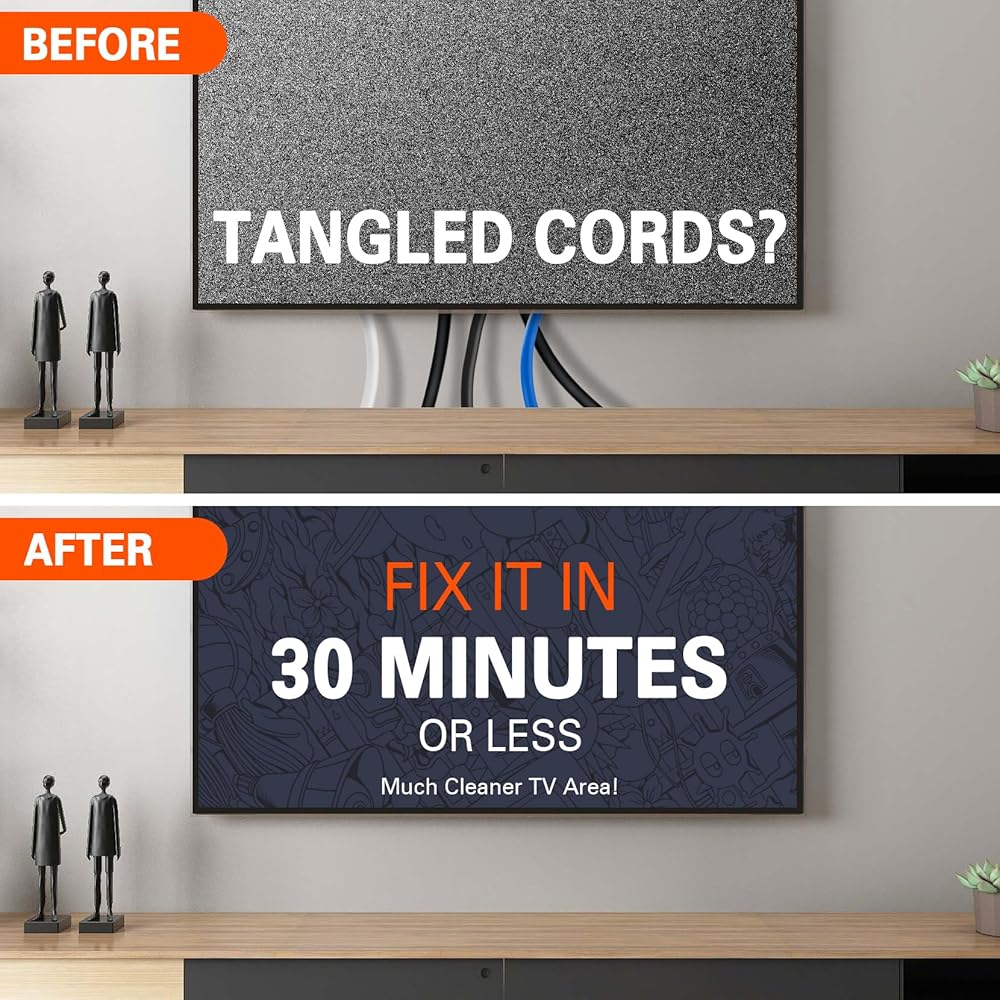 • سهلة التركيب: تشتمل مجموعة إدارة الكابلات التي يمكنك تركيبها بنفسك على الحائط على منشار ثقب للجدران الجافة للحصول على ملاءمة مثالية وأجنحة دعامة قفل آمنة؛ كل ما عليك إحضاره هو مثقاب، مما يسمح بالتركيب الأنيق والسهل في أقل من 30 دقيقة؛ نظرًا لتصميمه السلكي مسبقًا، لا حاجة إلى كهربائي أو أسلاك صلبة، مع مظهر نظيف واحترافي بمجرد تركيبه