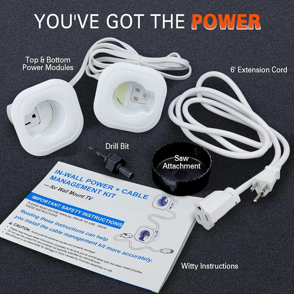 • ماذا يوجد في العلبة: في مجموعة إدارة كابلات الحائط، يتم تضمين جميع الأجزاء والأدوات اللازمة للتركيب في طقم تلفزيون مثبت على الحائط لإخفاء الكابلات، بما في ذلك كابل طاقة سلكي مسبقًا بطول 5.25 بوصة، وحلقتين للطاقة، وسلك طاقة بطول 6 بوصات، وقطعة مثقاب ومنشار الثقب، تعليمات التثبيت