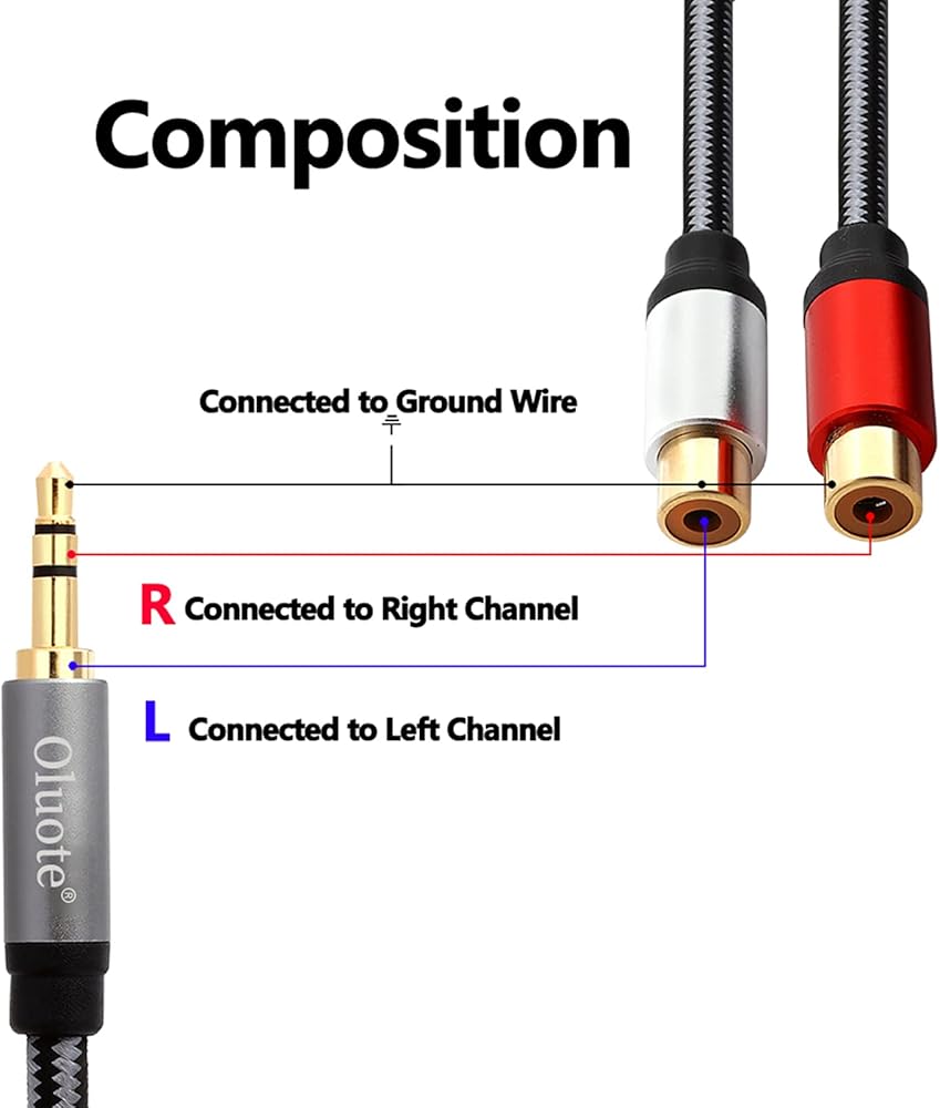 جودة احترافية - يتميز سلك الصوت الاستريو المساعد RCA بدرع مزدوج وموصلات معدنية مصقولة وموصل 3.5 ملم مطلي بالذهب مقاوم للتآكل للحصول على صوت نقي وواضح والحد الأدنى من فقدان الإشارة.