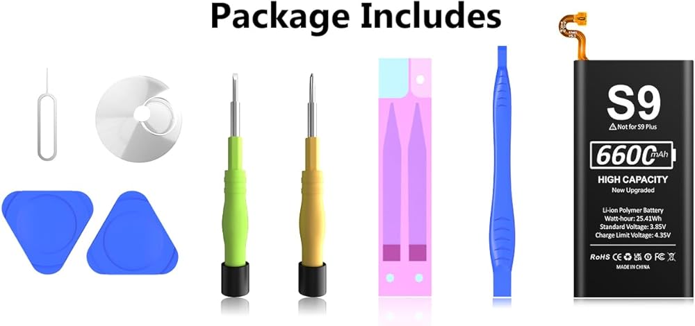 【جودة عالية】تضمن الخلايا من الدرجة A+ عمرًا أطول للبطارية، البطارية البديلة لمجموعة Samsung Galaxy S9 متضمنة أدوات الإصلاح والتعليمات. أدوات كاملة وتعليمات واضحة. حتى لو كنت غير محترف، يمكنك أيضًا اتباع التعليمات لتثبيت البطارية خطوة بخطوة. نقترح عليك مشاهدة المزيد من مقاطع الفيديو ذات الصلة حول استبدال البطارية على YouTube قبل استبدالها.