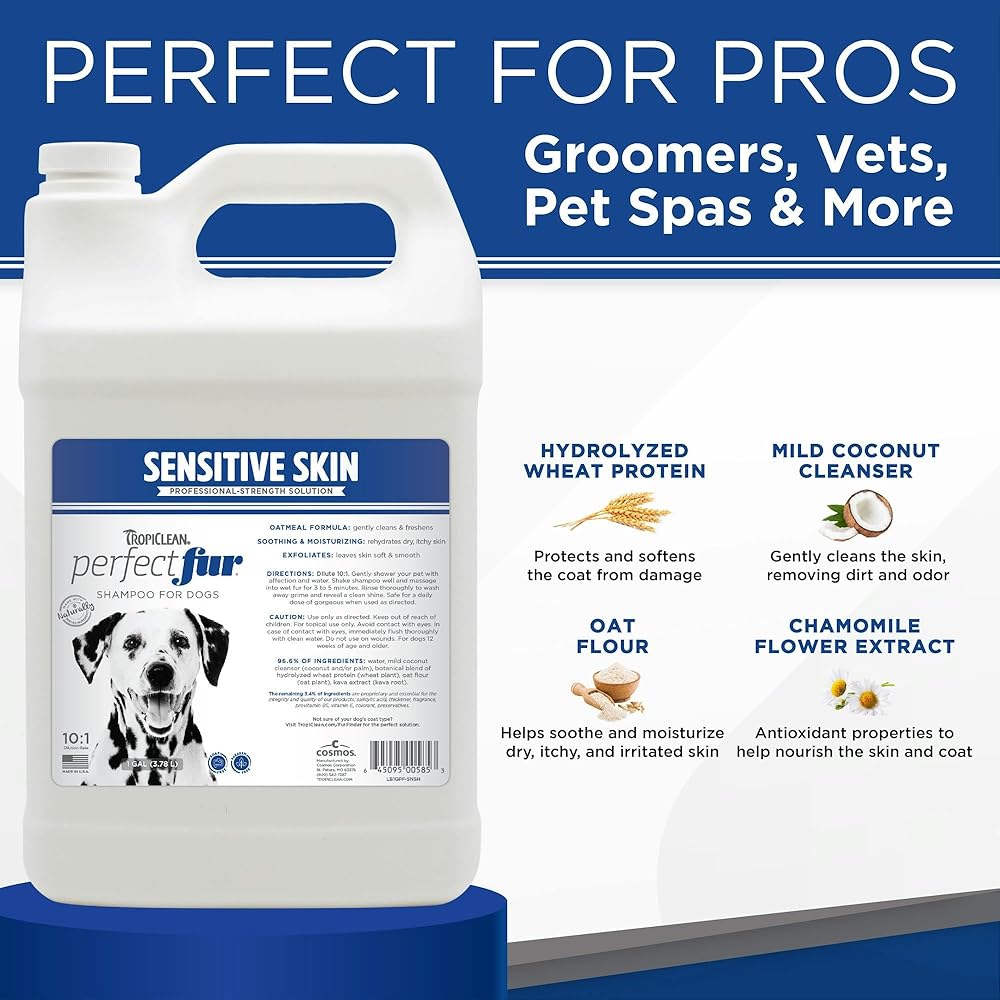 زوج مثالي - قم بإقران شامبو الكلاب المركّز المصنوع من دقيق الشوفان للبشرة الحساسة مع بلسم الكلاب PerfectFur الخاص بنا للحصول على نفس جودة النظافة والانتعاش التي يختبرها حيوانك الأليف في صالون الحلاقة.