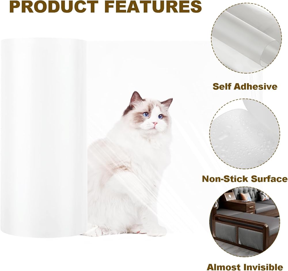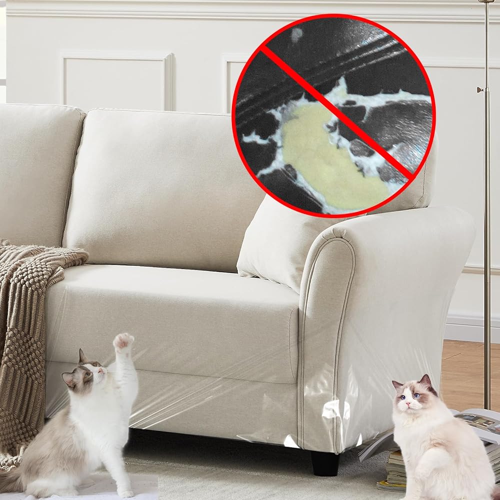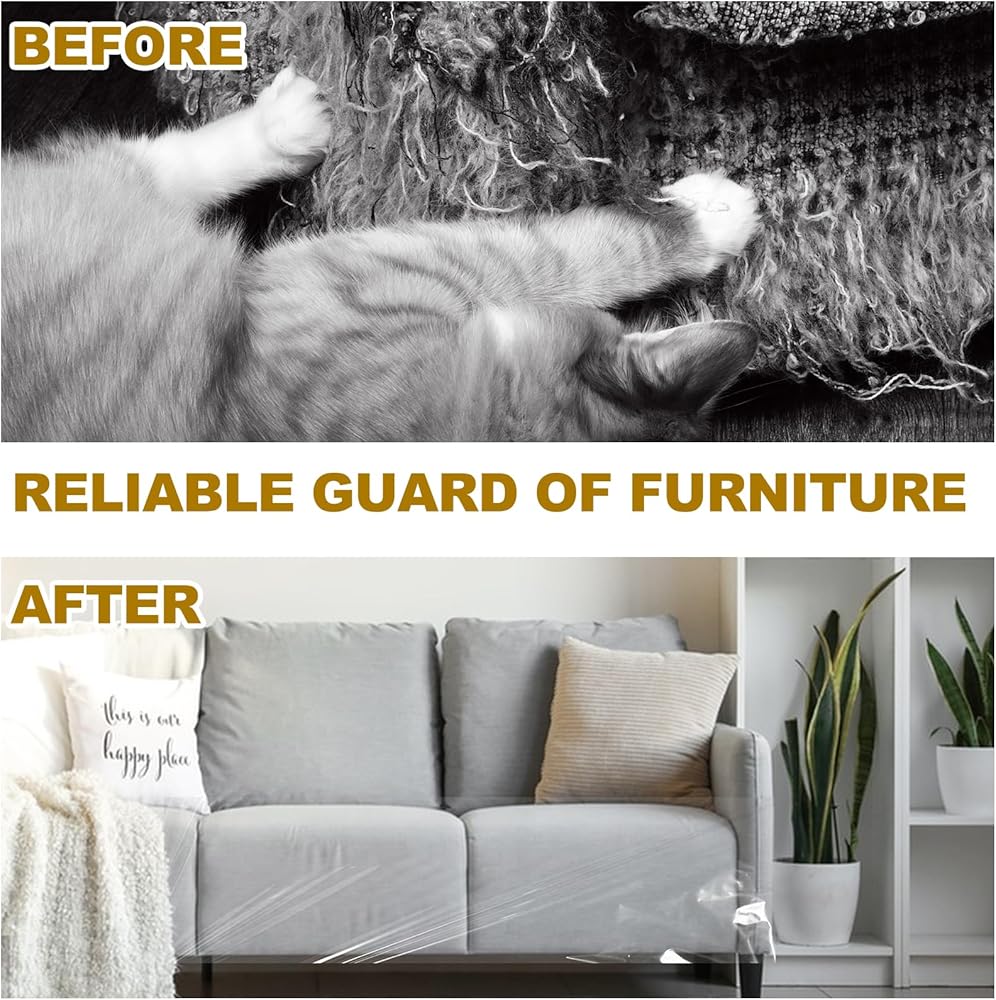 AKOLAFE 3 Rolls Anti Scratch Furniture Protector from Cats, 118x8 Inch Cat Couch Protector, Couch Corner Protectors for Cats, Cat Scratch Guards for Furniture, Keep Cats from Clawing Furniture Off, Sticky Paws Tape for Cats Training, Stop Cat Scratching Deterrent for Couch, Sofa, Door