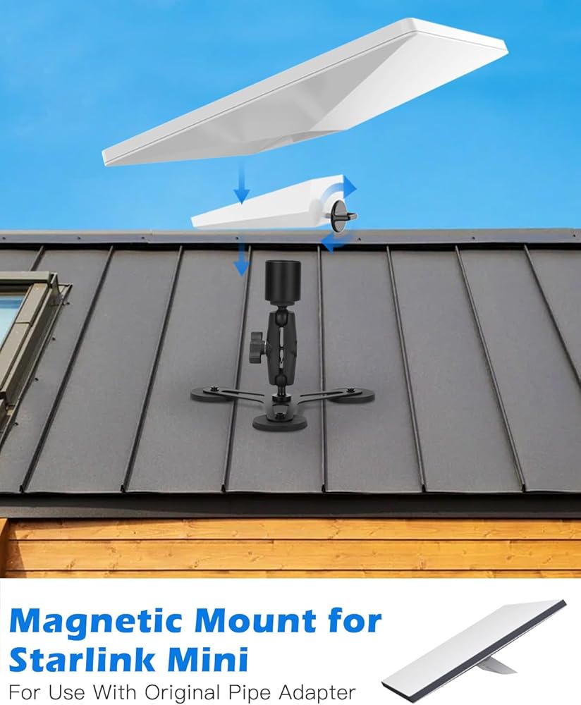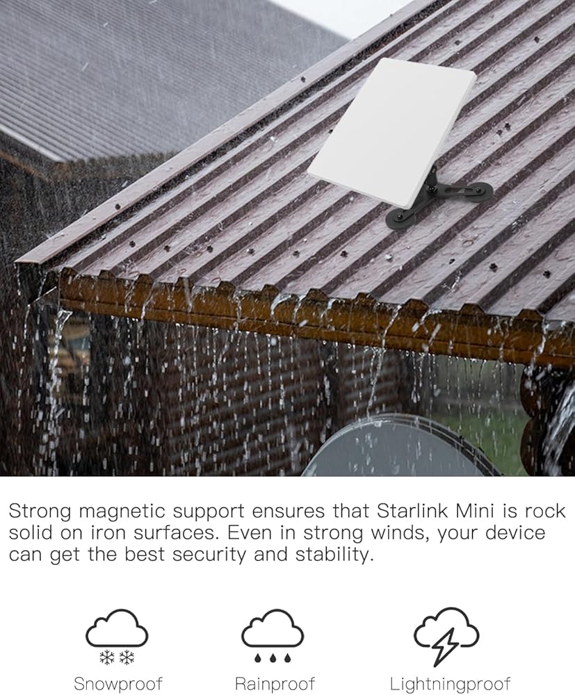 • Multi-purpose Design: The magnetic mount can fix the Starlink Mini on an iron roof, iron plane or vehicle roof without drilling holes for installation. Whether it is temporary fixation or permanent installation, it can be easily handled.