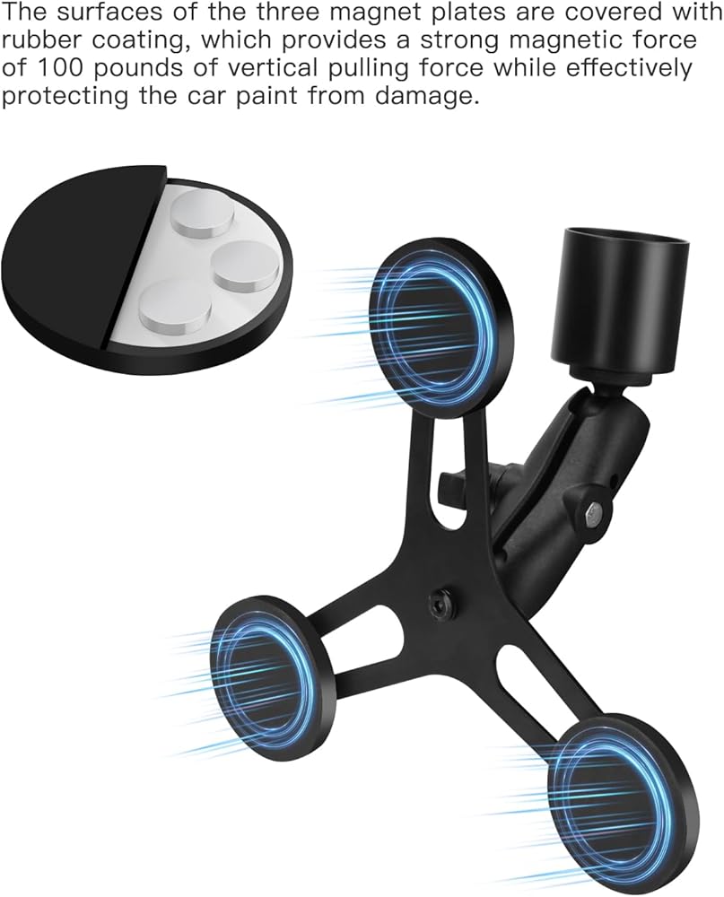 • Simple and Quick Installation: Simply place the magnetic mount on the iron surface or the ground, tighten the pipe adapter to quickly complete the installation, and create a stable fixing point.