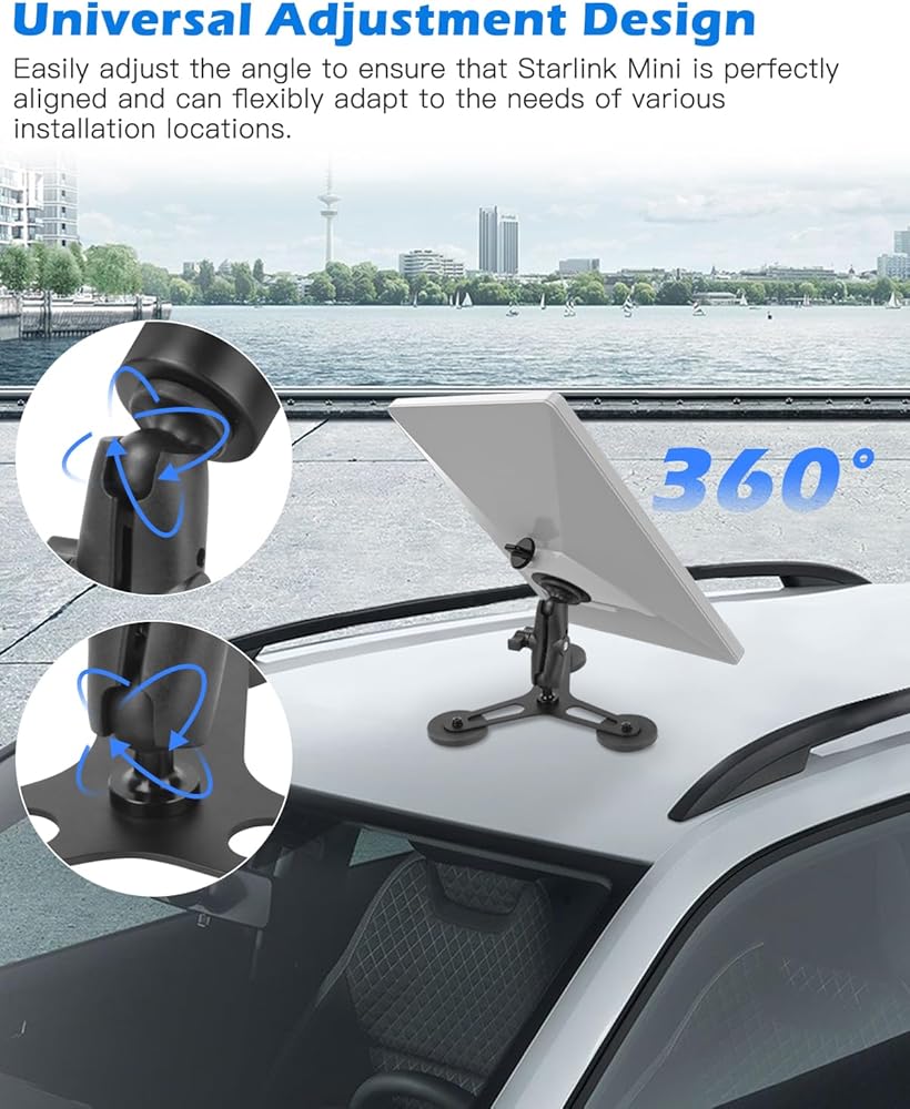 The magnetic mount suitable for Starlink Mini not only provides strong magnetic suction and stable support but is also adaptable for various usage scenarios, from temporary fixes to permanent installations. Its universal adjustment design allows you to easily change the angle by simply loosening the hand-tightened knob on the middle connecting rod. Once you've found the ideal angle, tighten it to securely hold the two adjustable ball heads in place, ensuring perfect alignment. The rubber-coated magnet protects your car's paint, and the installation is simple and requires no drilling, allowing you to enjoy a stable internet connection effortlessly.