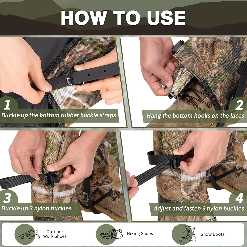 أغطية ساق الأفعى المموهة من هايكين، أغطية أحذية قابلة للتعديل للمشي لمسافات طويلة، واقيات ثعبان مقاومة للماء، حماية من عضات الثعبان لأسفل الساقين، أغطية مقاومة للثعبان تناسب الرجال والنساء