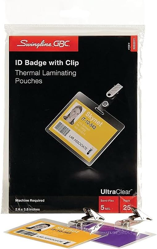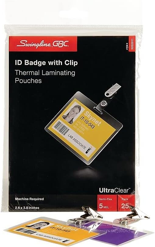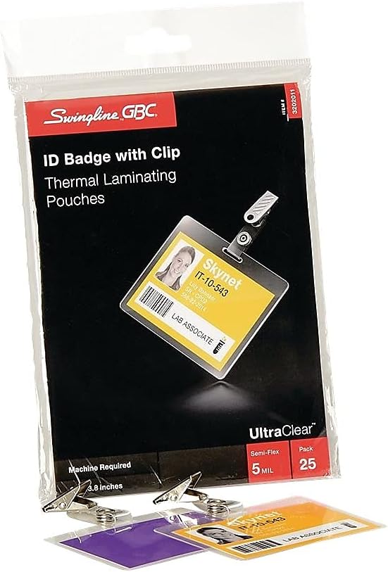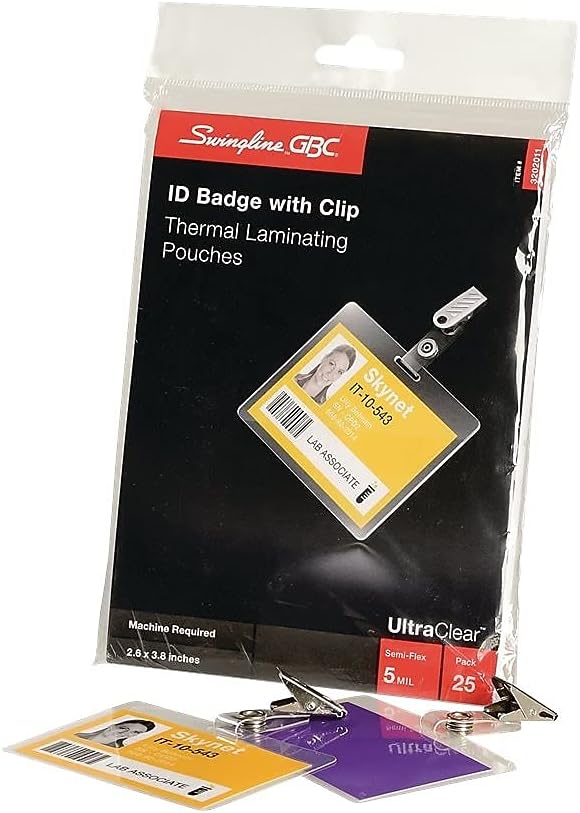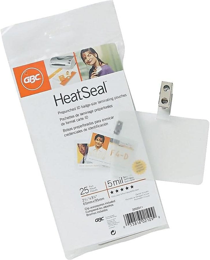 أوراق/أكياس تغليف حراري من GBC، حجم الشارة/بطاقة الهوية مع مشبك، 5 مل، فائقة الوضوح، 25 قطعة (3202011)