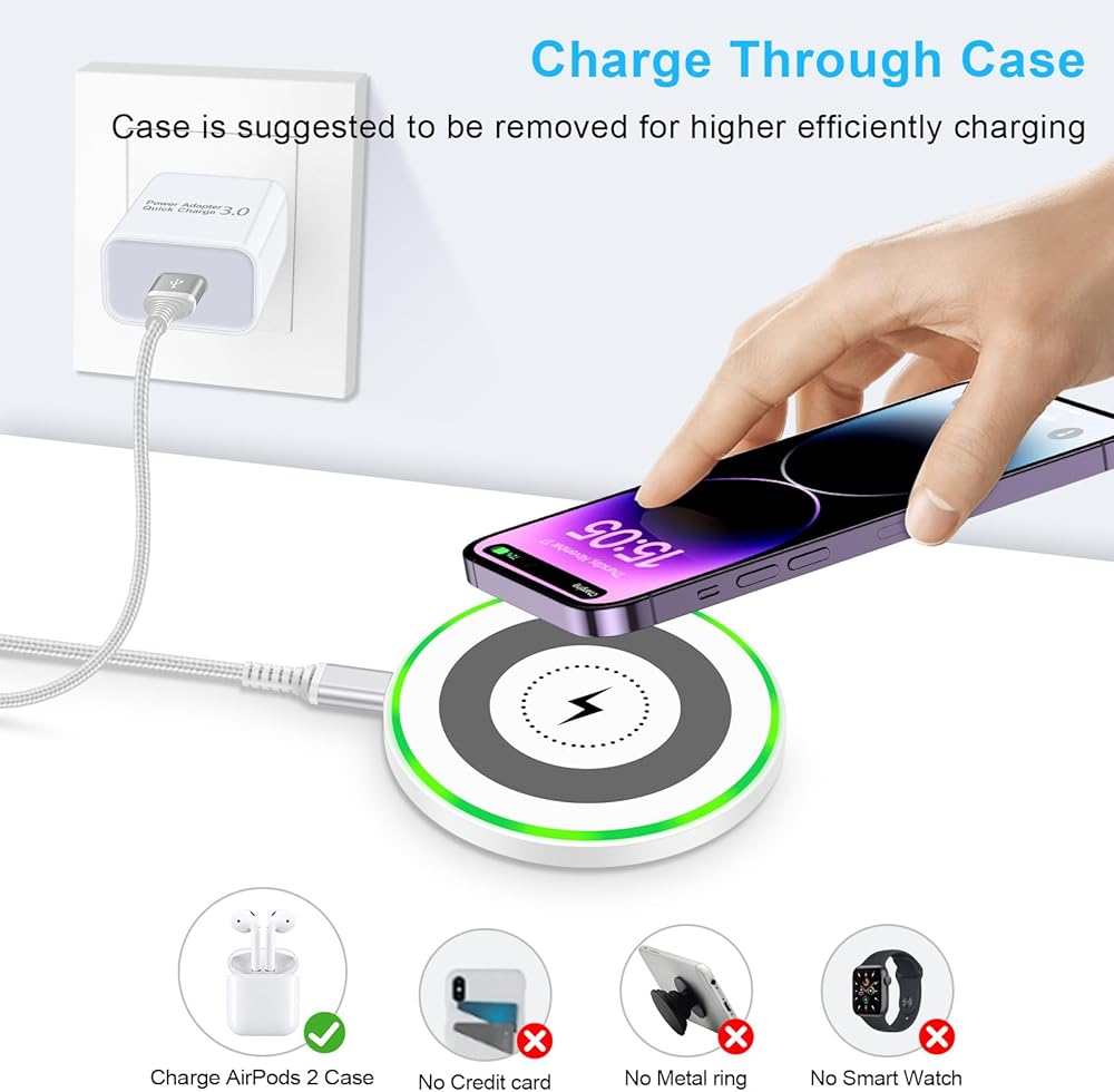 Just place your phone on the wireless charger for charging, no more need to plug and unplug. Place make sure your phone on the center of the wireless chargers to ensure stable charging