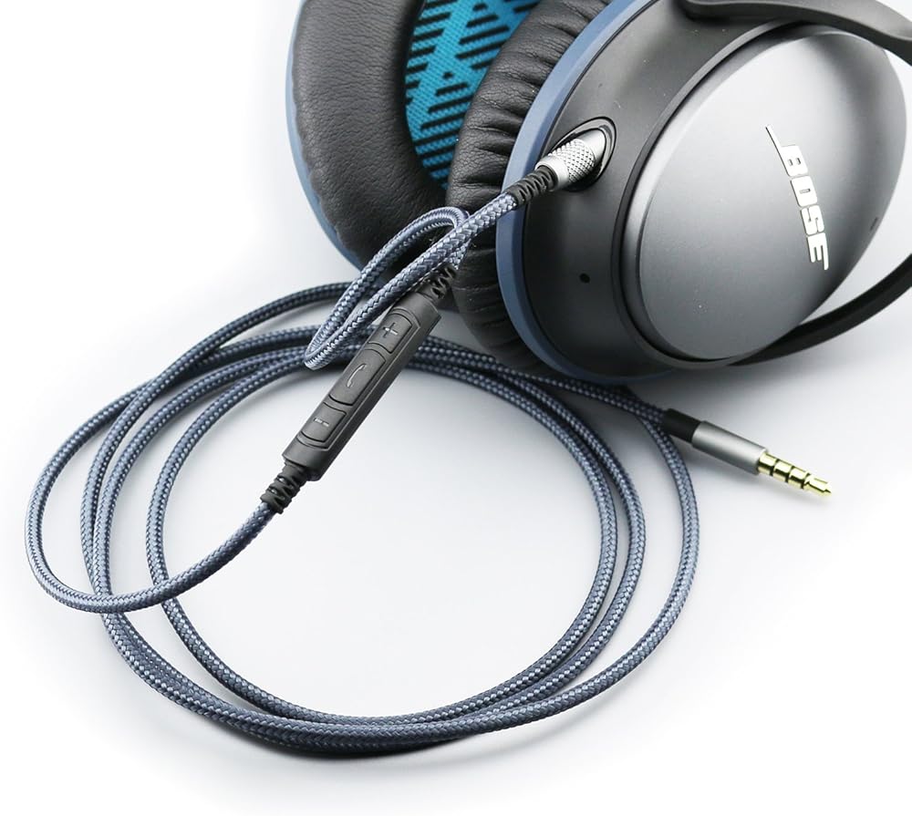 Replacement cable with Remote volume control & Mic compatible with Bose QC25, QC35, QuietComfort 25, QuietComfort 35 headphone Headphone and compatible with Samsung Galaxy Sony Xiaomi Huawei Android phone Stereo Jack Cables