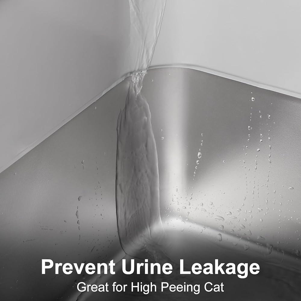 صندوق فضلات كبير جدًا من الفولاذ المقاوم للصدأ - يوفر صندوق القمامة الكبير جدًا من الفولاذ المقاوم للصدأ (24 بوصة × 15.7 بوصة × 12 بوصة) مساحة واسعة للقطط الكبيرة أو القطط المتعددة للتنقل أثناء تلبية احتياجاتها بشكل مريح. ولوحة القدم تجعل من السهل على جميع القطط، بما في ذلك القطط الصغيرة وكبار السن، الدخول والخروج بسهولة.