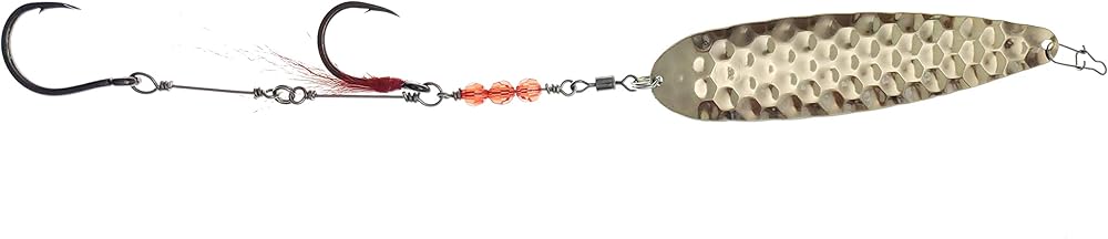 The SS Viper Spoon produces the perfect combination of flash, flutter, action and bait. With enticing action and the scent of your artificial or natural trailing bait, the SS Viper Spoon will catch even the most reluctant fish. Fish with confidence. The SS Viper Spoon is simply, a highly productive fish-catching lure which triggers the predatory instincts of virtually all species of fish. Add your own live bait, cut-bait, or artificial baits and make the SS Viper Spoon the ultimate Saltwater and Freshwater fish-catching lure. Quality counts: Heavy Duty stainless steel harness and 2 super sharp/strong, big game hooks. Great for all Saltwater fish - from Flounder to Stripers to Billfish and everything in between, the SS Viper Spoon takes your ordinary bait to a new level of irresistible fish-attracting action. The result is out-fishing other lures and even live bait. Great for all Fresh Water game fish. Highly reflective 24 karat gold or nickel plating and other great fish catching colors. Available in 2 models (Beaded or Buck tail), 4 colors and 2 sizes, the versatile SS Viper Spoon is extremely effective in catching an abundance of saltwater and freshwater fish - it's truly a fish magnet. The SS Viper Spoon's patented design makes it the ultimate fishing lure - it's the key to great fishing success.
