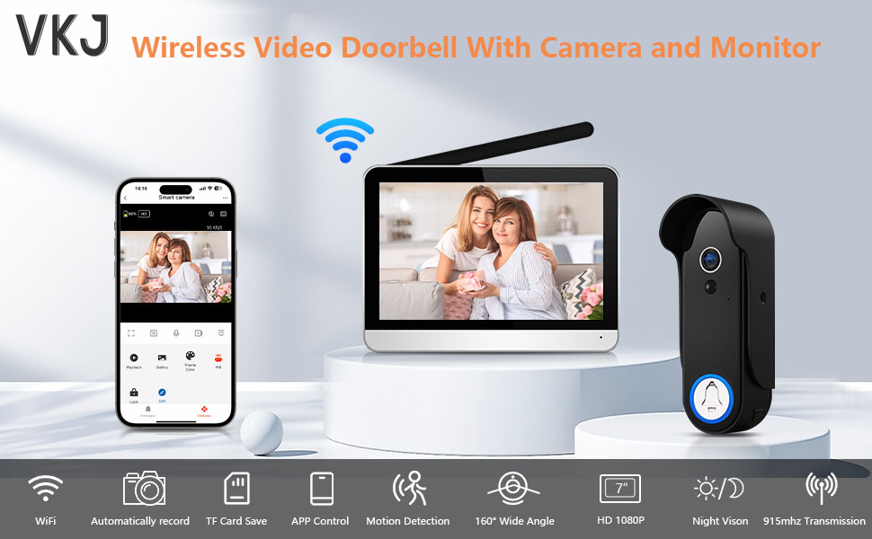 كاميرا جرس الباب اللاسلكية VKJ مع شاشة شاشة، جرس باب فيديو لاسلكي 7 بوصة 1080 بكسل WIFI مع شاشة شاشة، جرس باب مع كاميرا وشاشة، بدون رسوم شهرية، كاشف الحركة، فتح القفل عن بعد، تطبيق Tuya