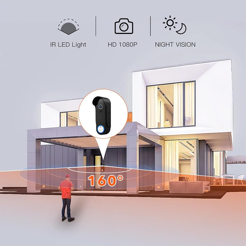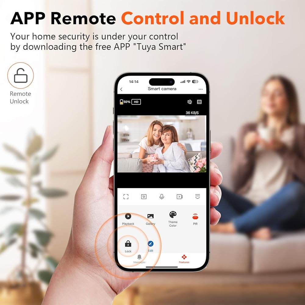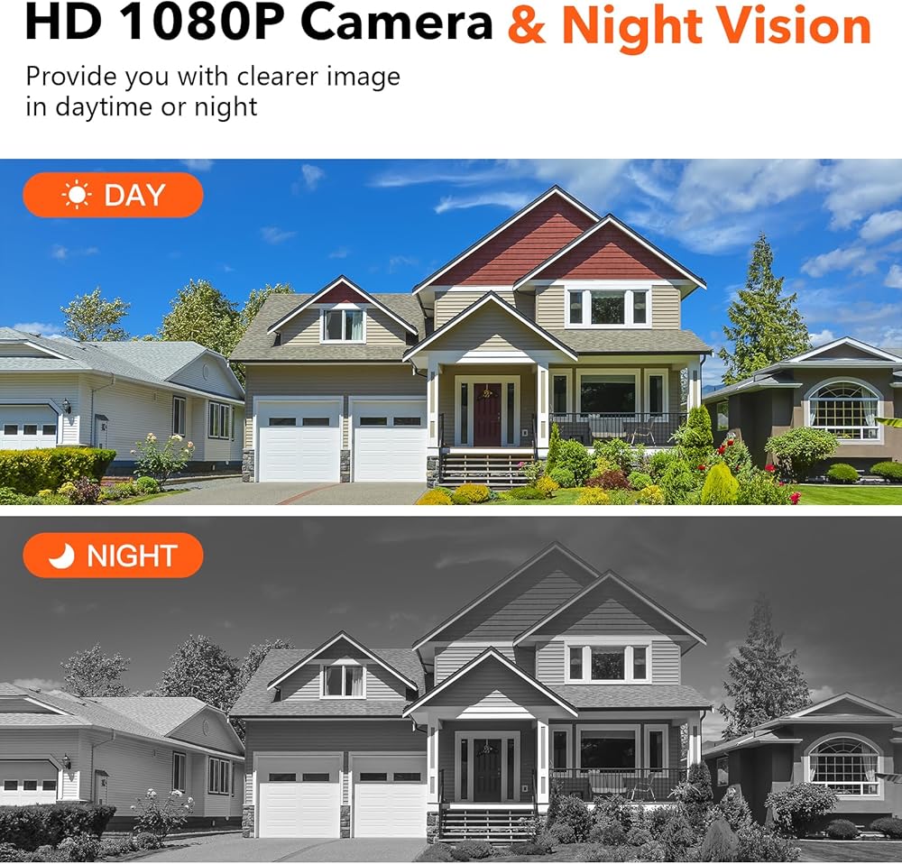 كاشف حركة صوتي وPIR ثنائي الاتجاه وفتح عن بعد: يحتوي نظام الاتصال الداخلي بجرس الباب بالفيديو اللاسلكي على مستشعر PIR مدمج يسمح لك بتلقي إشعارات فورية عندما يرن شخص ما جرس الباب الخاص بك أو عند اكتشاف الحركة. تمنحك الميكروفونات ومكبرات الصوت المدمجة صوتًا واضحًا ثنائي الاتجاه في الوقت الفعلي، حيث يمكنك رؤيته وسماعه والتحدث معه على الفور. يدعم فتح القفل عن بعد.