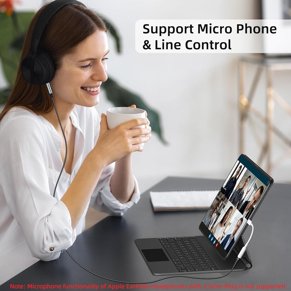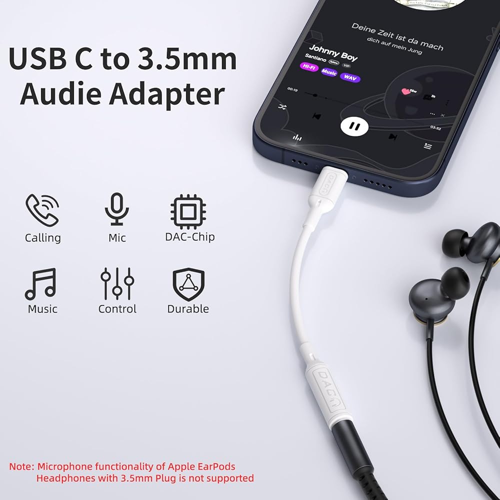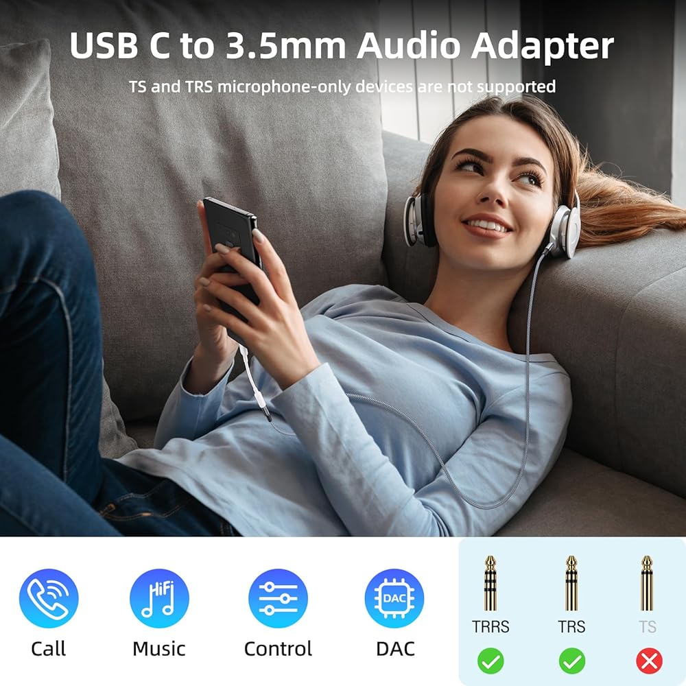 محول صوت USB C 3.5 ملم متعدد الوظائف: يمكّنك محول USB C إلى aux هذا من الاستماع إلى الموسيقى والرد على المكالمات الهاتفية باستخدام سماعة الرأس. بالإضافة إلى ذلك، فإنه يدعم أيضًا وظيفة التحكم في الأسلاك، مثل التحكم في مستوى صوت الميكروفون، ووظائف الإيقاف المؤقت والتشغيل، والتشغيل الألعاب والتوصيل والتشغيل، وهي سهلة الاستخدام للغاية