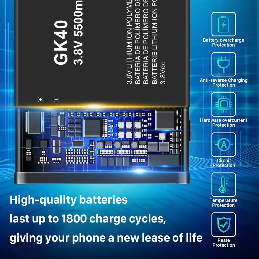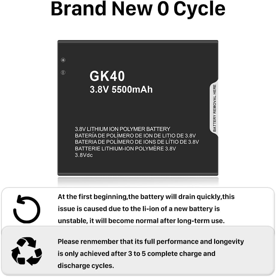 بطارية عالية الجودة: بطارية GK40 المطورة، تم اختبار كل بطارية بديلة باحترافية، وجميع البطاريات مصنوعة من خلايا بطارية ليثيوم أيون. يعزز عمر البطارية ويسمح بأكثر من 1800 عملية شحن عالية السرعة وفعالة