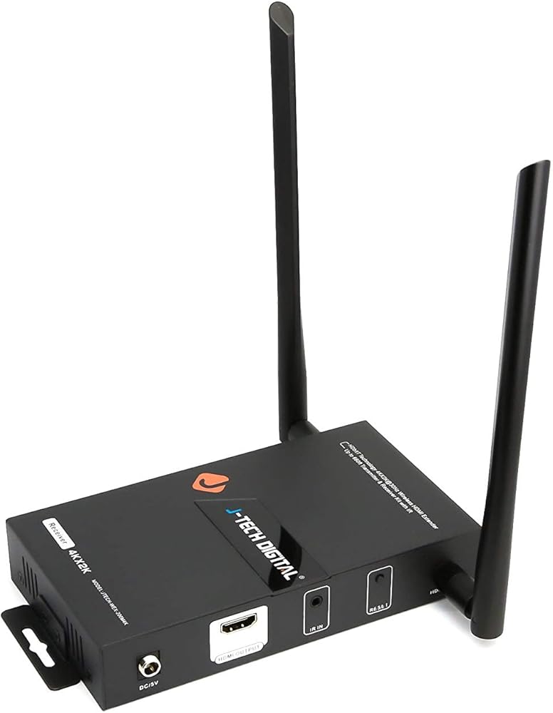 𝐀𝐌𝐀𝐙𝐈𝐍𝐆 𝐕𝐈𝐃𝐄𝐎 𝐐𝐔𝐀𝐋𝐈𝐓𝐘 𝐔𝐏 𝐓𝐎 𝟔𝟔𝟎 𝐅𝐓 𝐀𝐖𝐀𝐘 - مع موسع J-Tech الرقمي اللاسلكي، يمكنك نقل إشارة فيديو 4K@30 هرتز من أجهزة HDMI الخاصة بك إلى شاشة العرض في مكان منفصل لاسلكيًا، على مسافة تصل إلى 164 قدمًا ضمن خط مباشر من البصر. الإعداد سهل، ما عليك سوى التوصيل والتشغيل، دون الحاجة إلى أي تكوين.