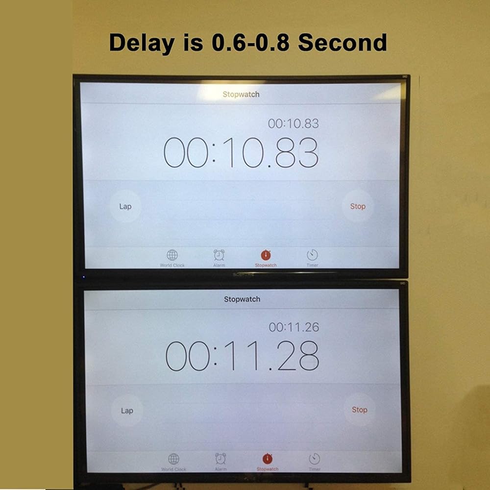 𝐃𝐄𝐋𝐀𝐘/𝐋𝐀𝐓𝐄𝐍𝐂𝐘 𝐓𝐈𝐌𝐄 - يبلغ وقت الاستجابة من المصدر إلى شاشتك حوالي 0.3-0.5 ثانية، مما يجعل الموسع الخاص بنا رائعًا لتشغيل الفيديو، ومع ذلك، لا ننصح بالتصوير في الوقت الفعلي أو ألعاب الكمبيوتر. تتضمن دقة HD المدعومة: 4K@30 هرتز، 1080P@60/50 هرتز، 1080i@60/50 هرتز، 720P@60/50 هرتز، 576P@60/50 هرتز، 576i@50 هرتز، 480P@60 هرتز، 480i@60 هرتز