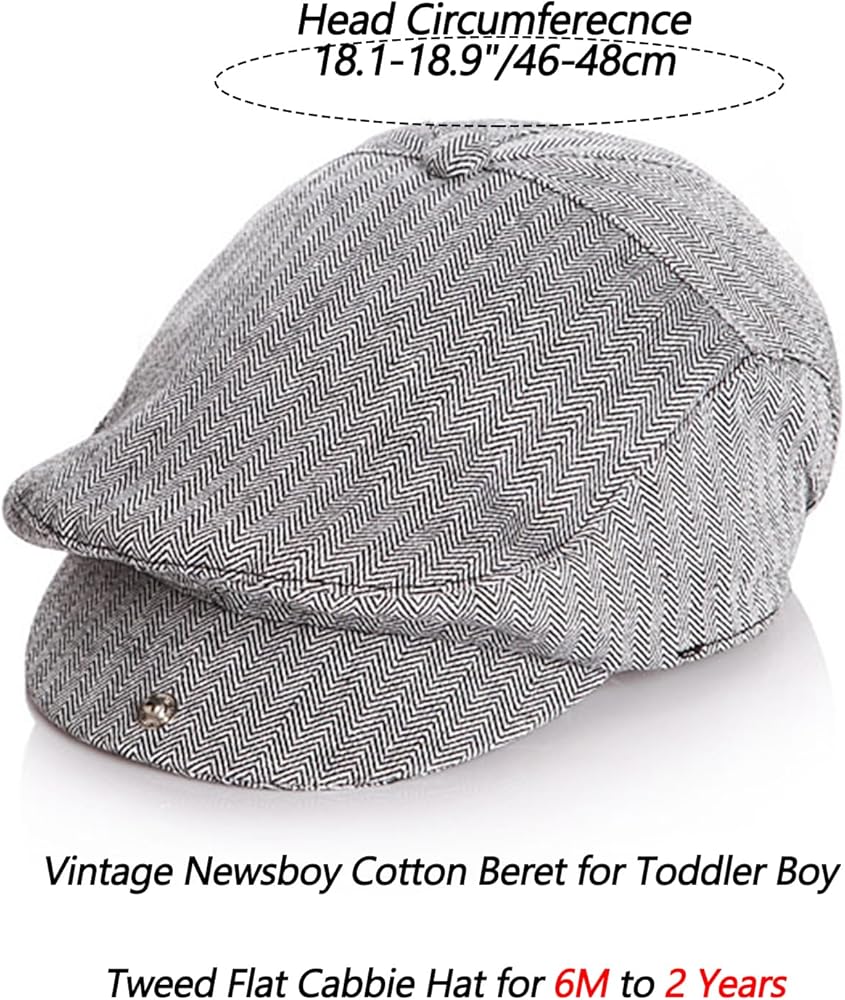 قبعة فينتاج-نيوزبوي-قطنية للأطفال الصغار - قبعة كابي مسطحة من التويد للأطفال من عمر 6 أشهر إلى عامين
