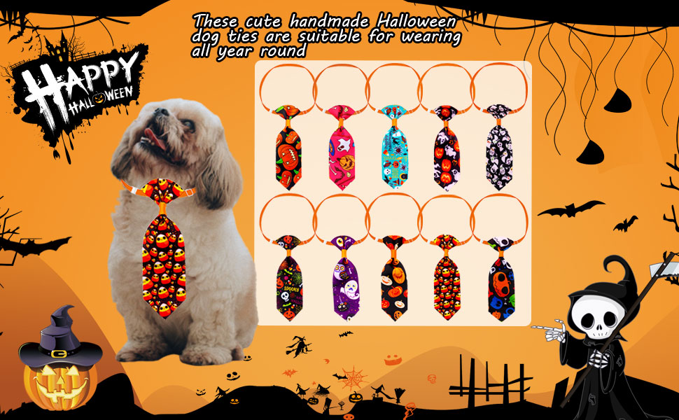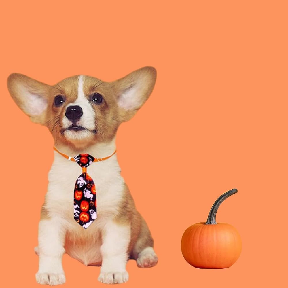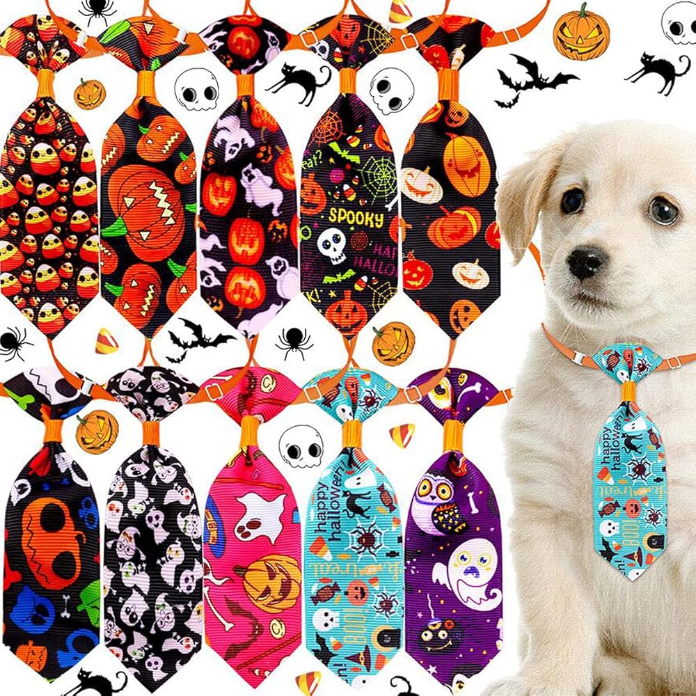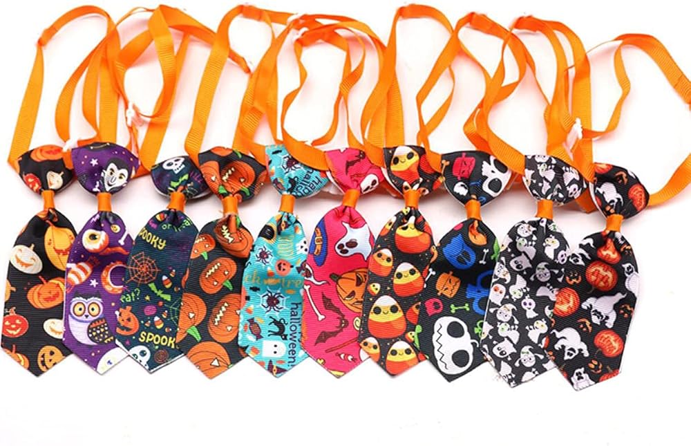 ربطات عنق للكلاب الهالوين للكلاب الصغيرة، 10 قطع ربطات عنق للحيوانات الأليفة مع ربطات عنق للجرو قابلة للتعديل، ربطة عنق شبح للحيوانات الأليفة، طوق للقطط، إكسسوارات شعر للكلاب لقضاء عطلة عيد الشكر (لون عشوائي)