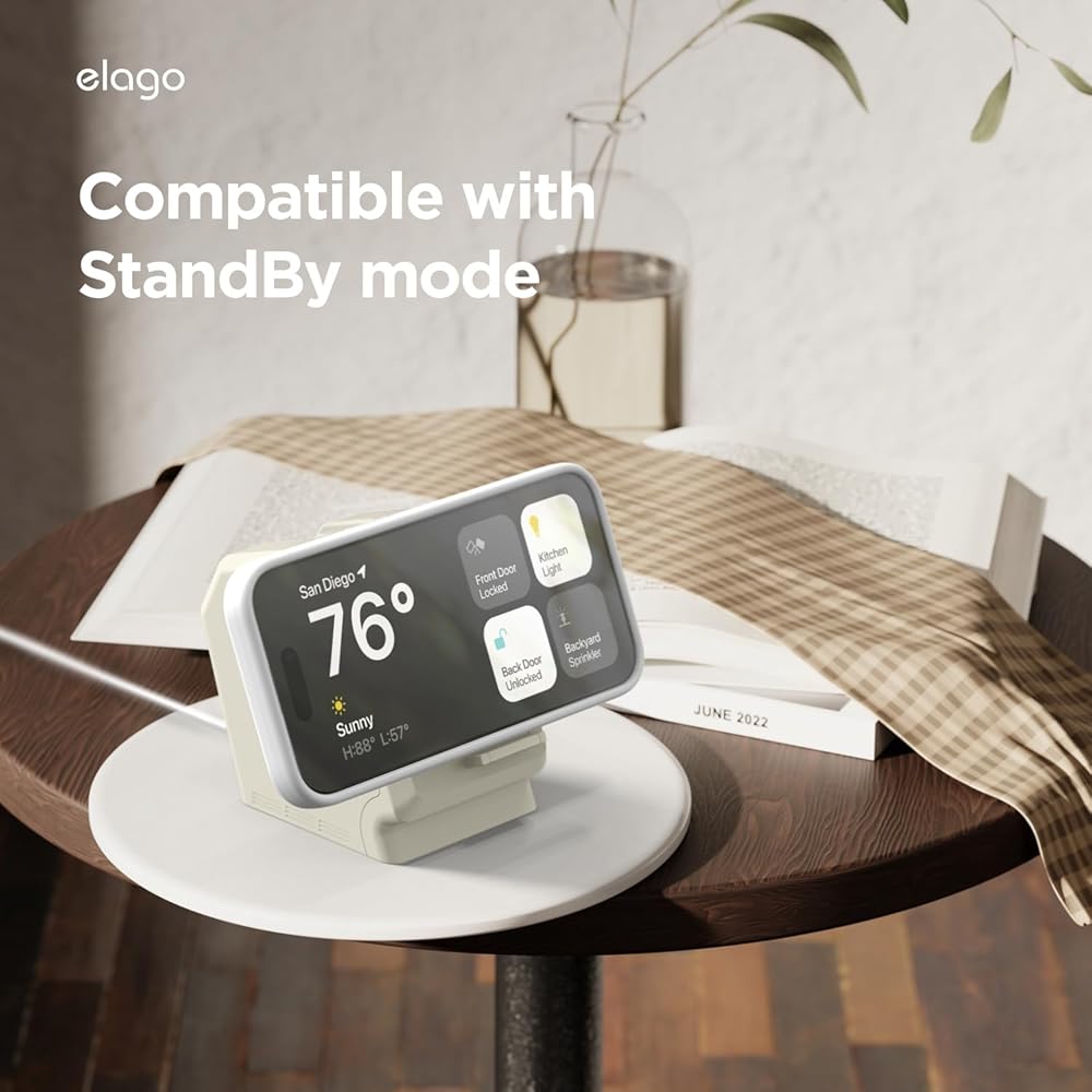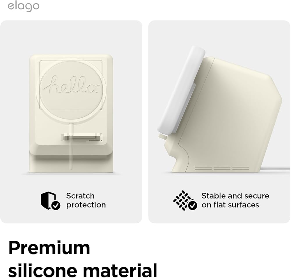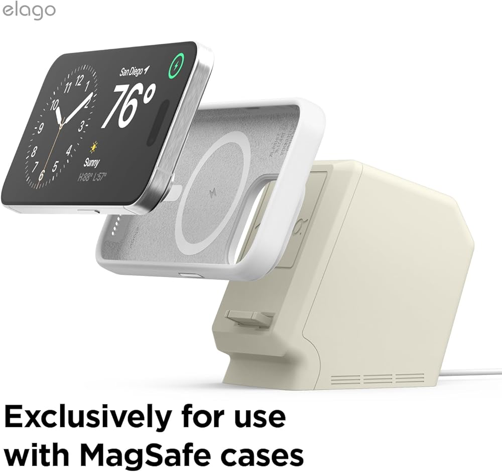 حامل شحن elago MS M4 متوافق مع شاحن MagSafe - تصميم شاشة كلاسيكي، حامل سيليكون ممتاز متوافق مع سلسلة iPhone 16/15/14/13/12 [أبيض كلاسيكي] [كابل الشحن غير متضمن]