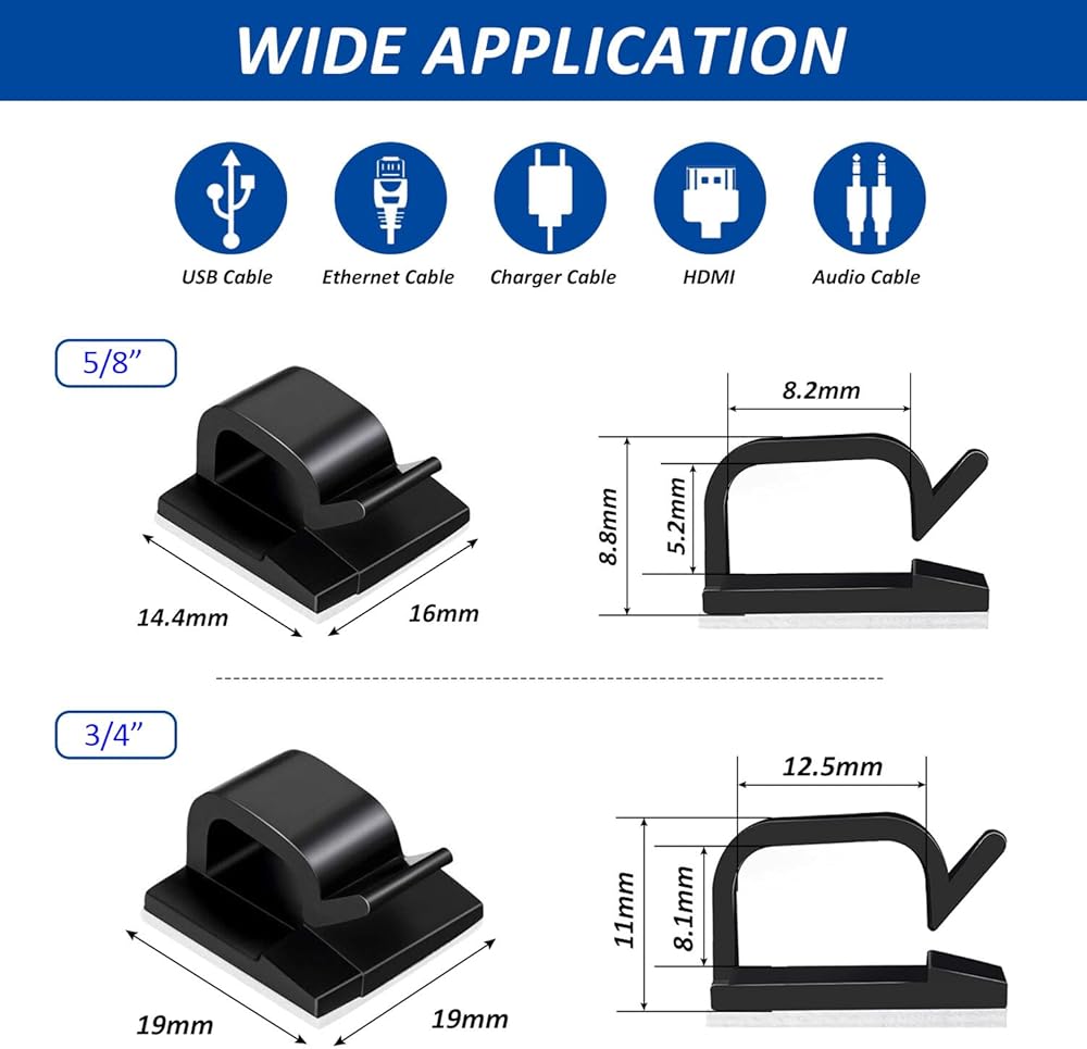 Wide Application: The cable management clips are wildly used for cable organizing, suitable for network cables, TV-coax cables, USB cords, Cell phone chargers, ethernet, electric wires, and dash cams in cars, homes, and offices.