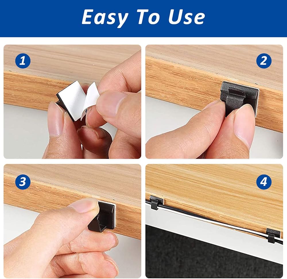 Easy to Install: peel off the backing and stick the wire clips for electric wires on a flat and dry surface without any screws or tools, our wire holder clips will organize your messy cables neat and tidy. Note: Make sure to clean the mounting surface before you use the wire organizer clips, stick it on, and press firmly for 30 seconds.