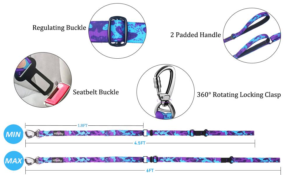 مقود الكلب القابل للتعديل: يمكن تعديل مقود تدريب الكلاب Hotsky من 4.5 إلى 6 أقدام، مما يوفر توازنًا مثاليًا بين الحرية والتحكم، ويمنح كلبك حرية كافية، ولكن كل شيء تحت سيطرتك. ما عليك سوى ضبط الحجم المطلوب وفقًا للشريحة. مشبك