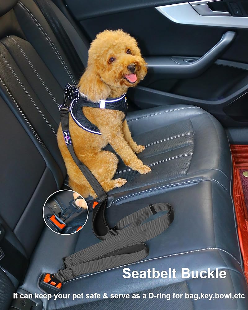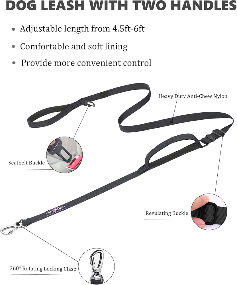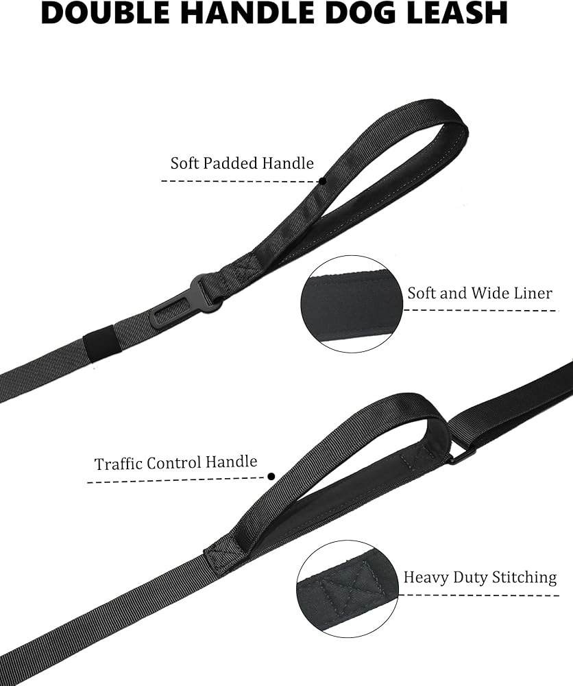 مقود الكلاب 2 في 1: يمكن استخدام مقود الكلاب ذو المقبض المزدوج ليس فقط لجر الحيوانات الأليفة، ولكن أيضًا كحزام مقعد السيارة لحماية سلامة كلبك اللطيف ومنع تشتيت انتباهك أثناء القيادة. تصميم الإبزيم الخاص بنا مناسب لجميع السيارات