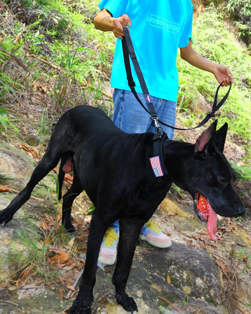 مشبك قفل دوار 360 درجة: مشبك خطاف قفل الأمان المزدوج لمقود الكلب بطول 6 أقدام مصنوع من الفولاذ المقاوم للصدأ ومصمم ليوفر لك خدمة في جميع الأحوال الجوية. يمكنها منع الكلاب من كسر الحبل والهروب أثناء التدريب والمشي. يتيح الإبزيم الدوار بزاوية 360 درجة لكلبك التحرك بحرية دون أن يتعرض للخنق أو التشابك