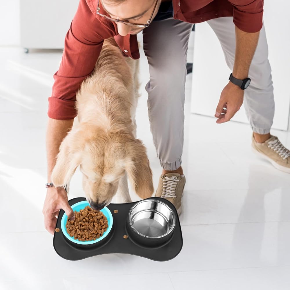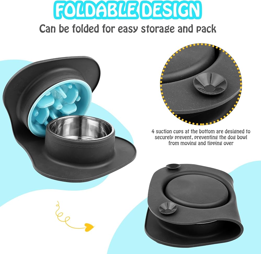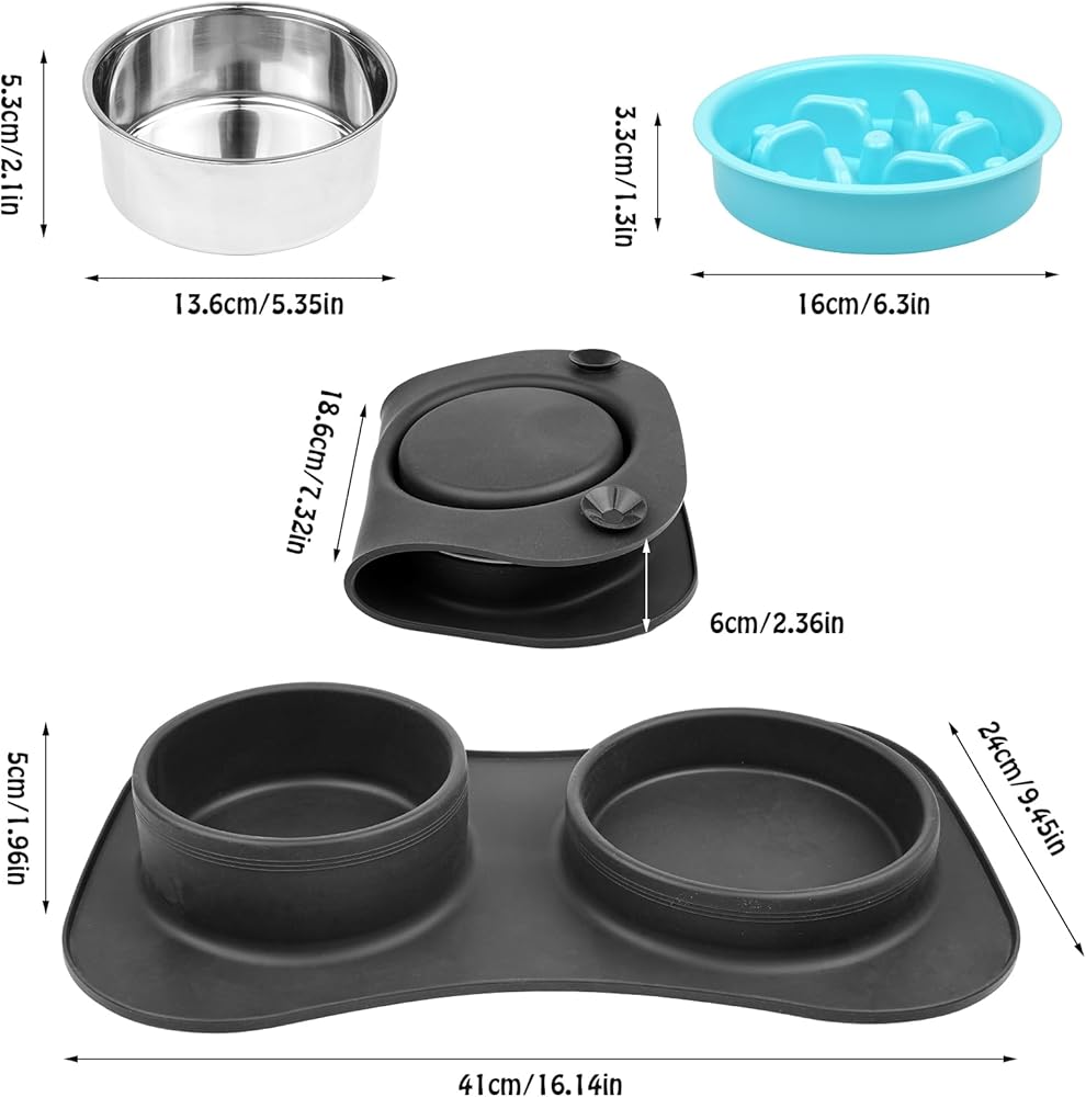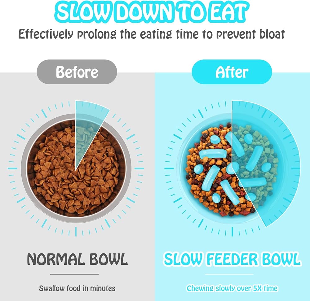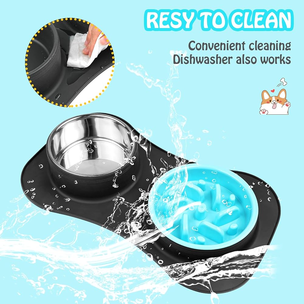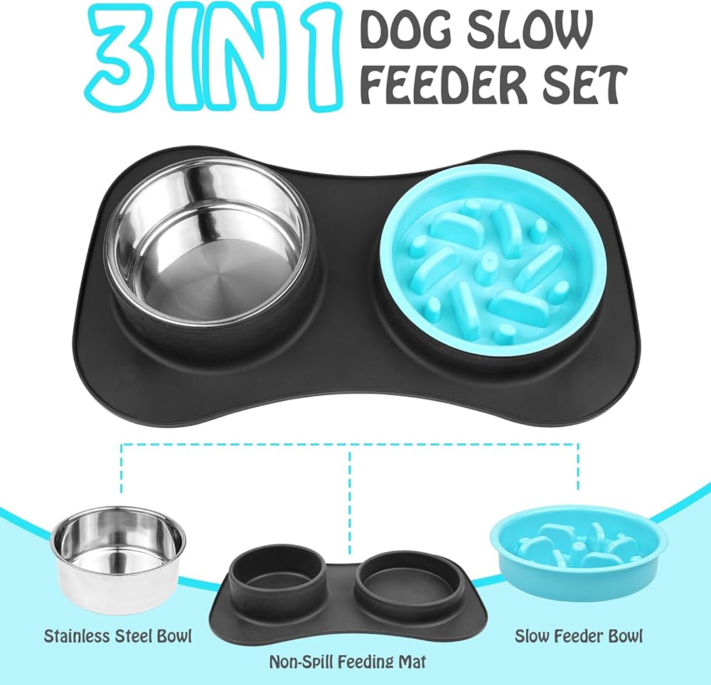 أوعية تغذية بطيئة للكلاب 3 في 1 أوعية طعام ومياه من الفولاذ المقاوم للصدأ مع حصيرة سيليكون مضادة للانسكاب ومضادة للانزلاق لإبطاء تناول الطعام للكلاب والقطط الكبيرة والمتوسطة الحجم والصغيرة الحجم، أوعية طعام آمنة للكلاب