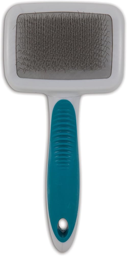 Wire slicker removes tangles, dead hair and debris while distributing a healthy coat