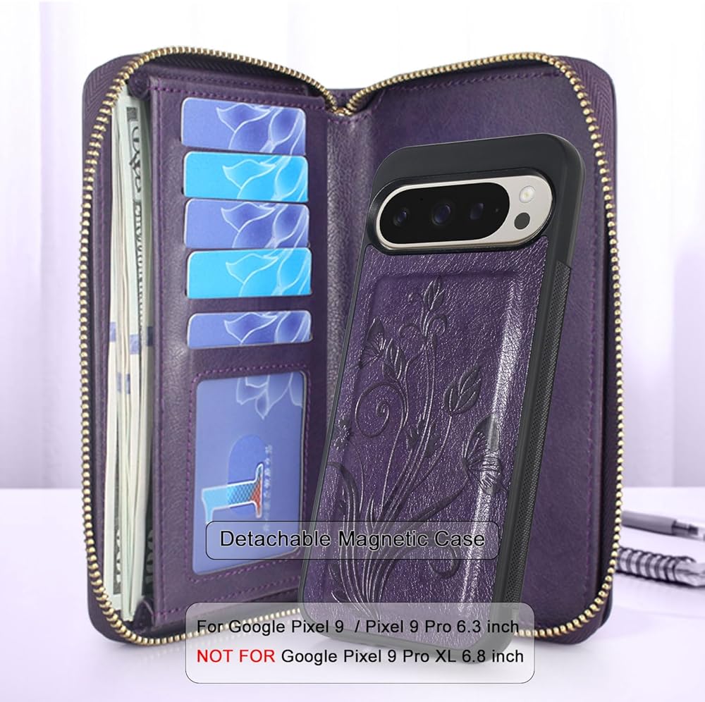 محفظة بسحاب مصممة خصيصًا بحزام حول الجسم مع حافظة مغناطيسية قابلة للفصل متوافقة مع هاتف Pixel 9.Pixel 9 Pro 2024 فقط. يرجى التحقق من طراز هاتفك قبل شراء أي طلب.