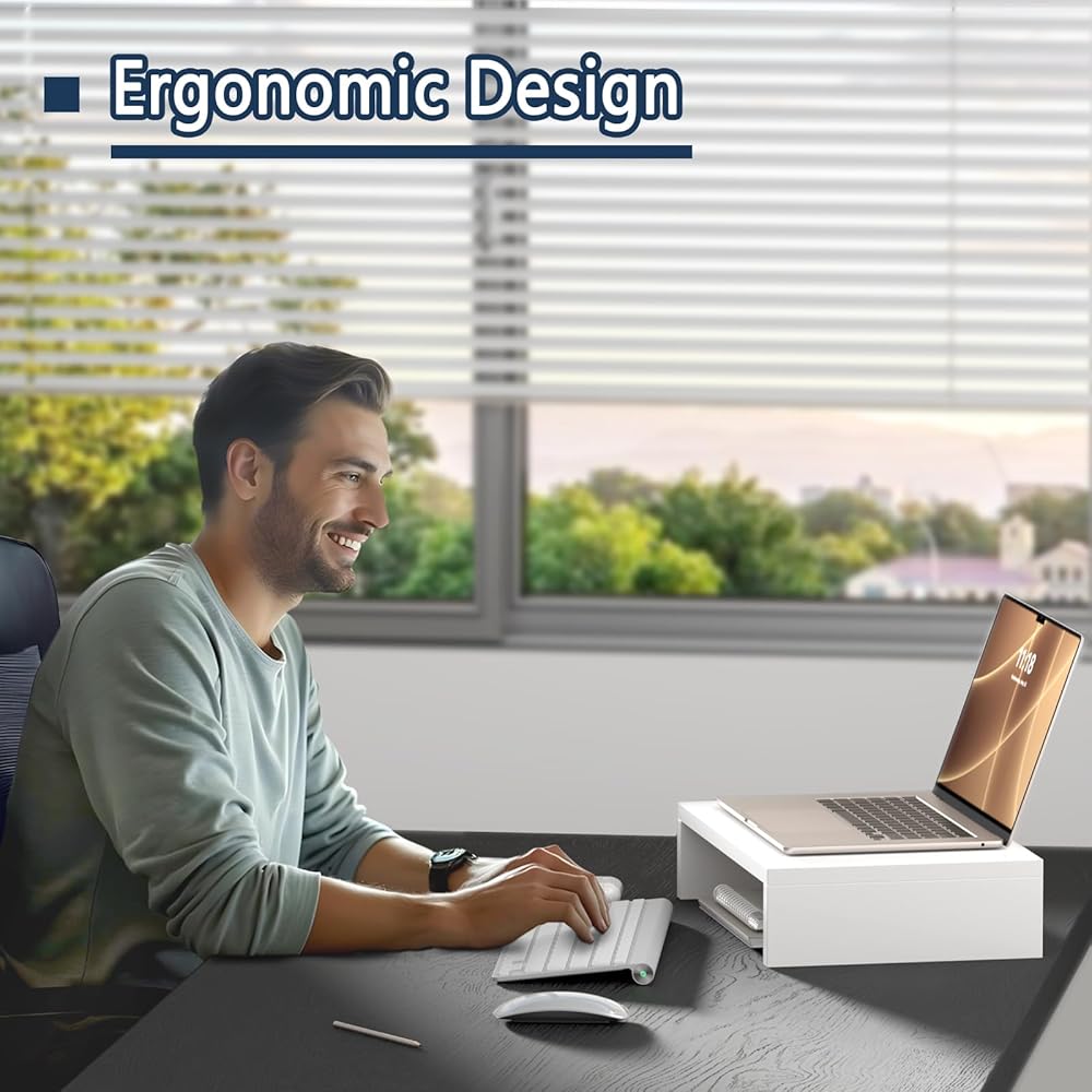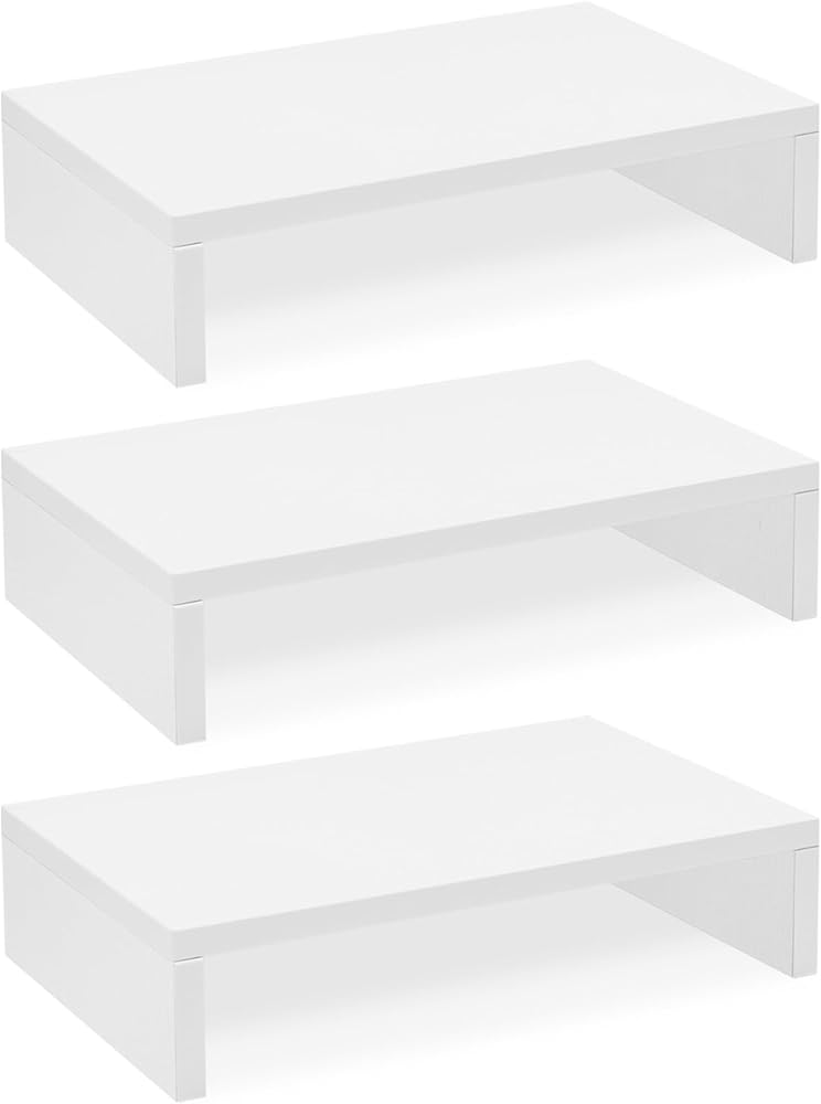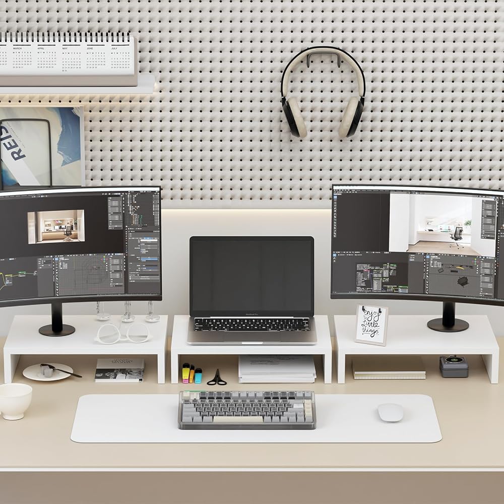 【شريك المكتب المثالي】يمكن لهذه الحوامل البيضاء الكلاسيكية الثلاثة أن تلبي احتياجاتك الثلاثة مرة واحدة: ★رفع 3 شاشات/أجهزة كمبيوتر محمولة/طابعات/صناديق ألعاب ★تخفيف التعب ★زيادة مساحة التخزين.