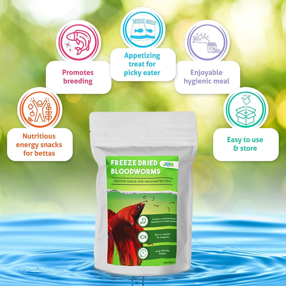 Bettas, being carnivorous fish, need a rich diet. In the wild, they live by consuming fallen insects or aquatic worms. This diet requirement is something that every betta keeper should replicate. A varied diet regimen can keep your Siamese Fighting Fish healthy and energetic. Feeding Bloodworm for Betta by Jor is a good way to offer a diverse yet energy-rich diet to your pets.