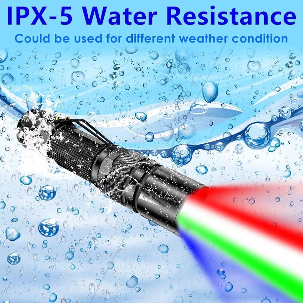 2.Red / Green Light - animals's eyes are not sensitive to red / green light like human's, so they will not spooked by this red light LED flashlight. It's very helpful to find the target in the dark, like hogs, coyotes, foxes.