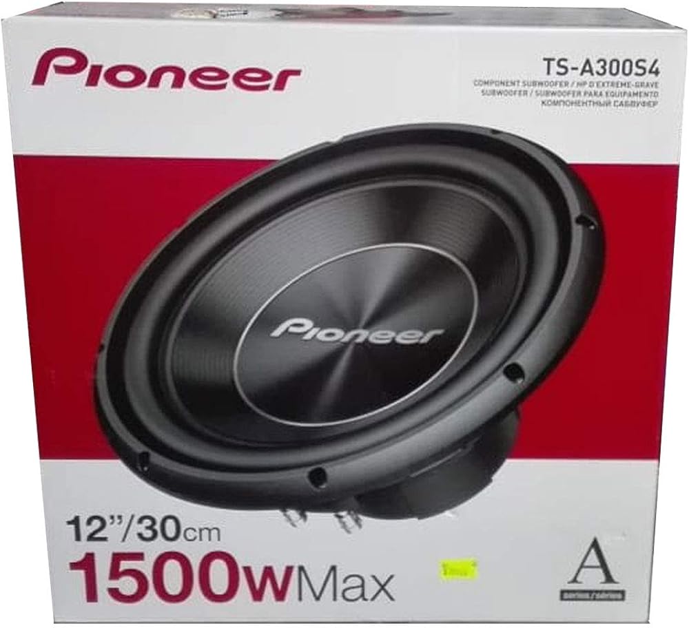 Pioneer TS-A300S4 - 1500 Watts 12" 30cm Single Voice Coil Car Subwoofer Get powerful, punchy bass in your car – from the pedigree of world record-breaking subs. The TS-A300S4 features a combined IMPP cone, which makes the body ultra-rigid yet lightweight, giving you low distortion and powerful bass at high sound press levels. Upgrade the original sound system of your car. Our A-series subwoofers compliment our A-series speakers to give you that sound upgrade solution that you have been looking for. The A-series subwoofers combine superior high quality sound, design and technology, along with carefully selected materials to improve bass response. When matched with Pioneer's GM-A series of amplifiers, you can enjoy powerful, solid bass in your car, no matter what volume level.